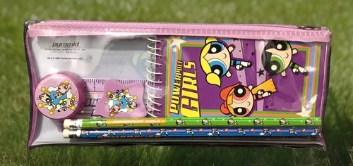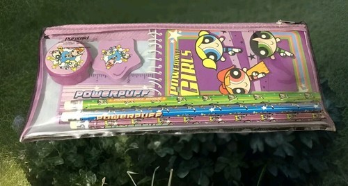 This vintage set of Powerpuff Girls pencils and pencil case is a must-have for any fan of the beloved 1999 cartoon series.