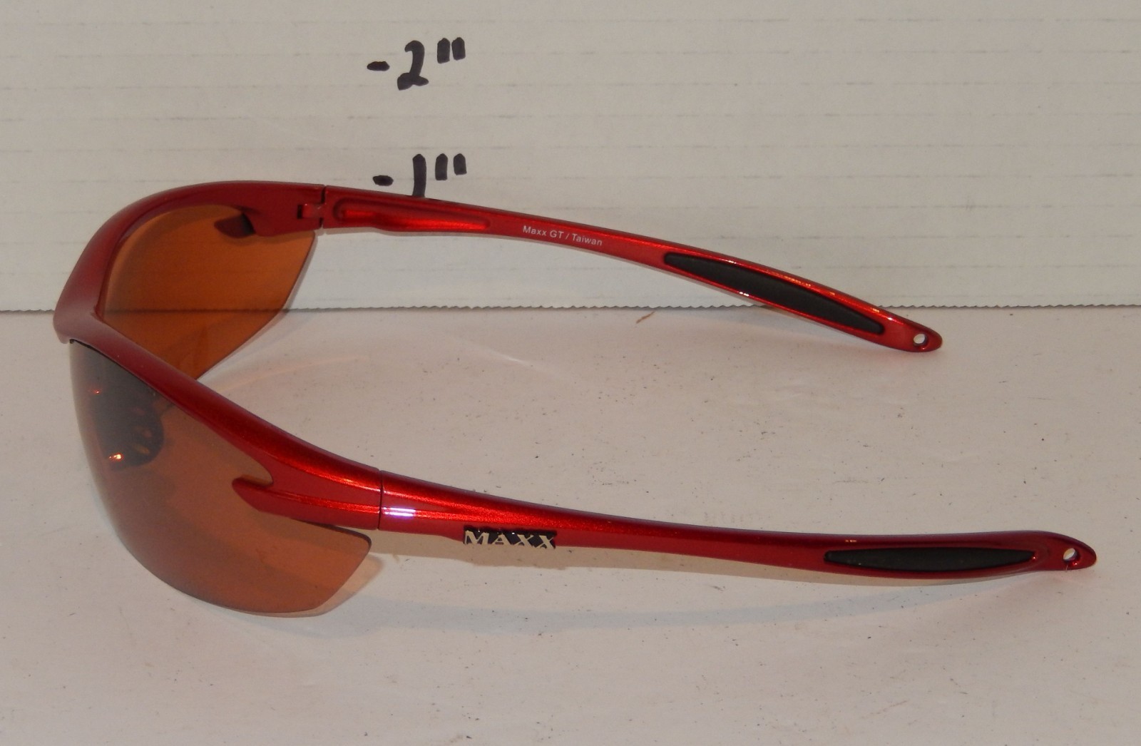 These Maxx GT wrap-style sport sunglasses feature a sleek red metallic frame with amber lenses for high-contrast vision and glare reduction. Designed for performance, they provide full UV protection and a comfortable, secure fit ? perfect for cycling, running, fishing, driving, or outdoor activities.