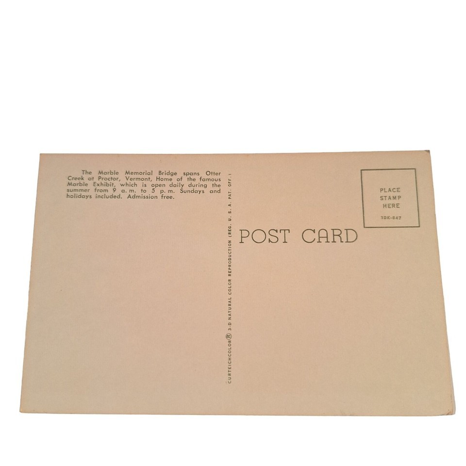 Postcard The Marble Memorial Bridge Proctor Vermont Chrome Unposted