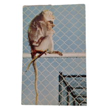 Postcard Mother Monkey Holding Baby Monkey On Fence Animal Primate Chrome