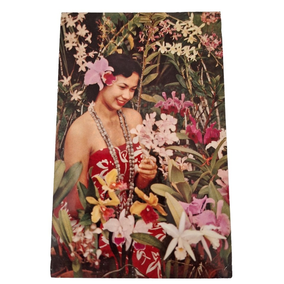 Postcard Lovely Hawaii Sarong Clad Maiden Hawaiian Orchids Chrome Posted