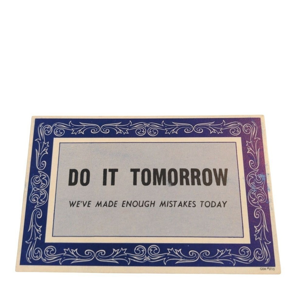 Postcard Do It Tomorrow We've Made Enough Mistakes Today Humor Chrome Unposted