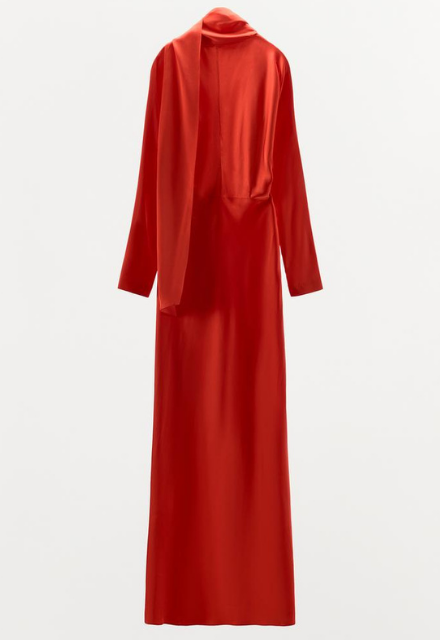 ZARA BNWT 2025. RED SATIN VISCOSE DRESS BATWING SLEEVES SCARF. 2678/617/600