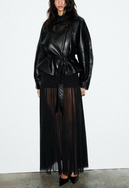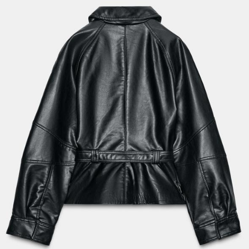 ZARA BNWT 2025. BLACK FAUX LEATHER PEPLUM JACKET BLAZER OVERSIZE. 4749/723/800