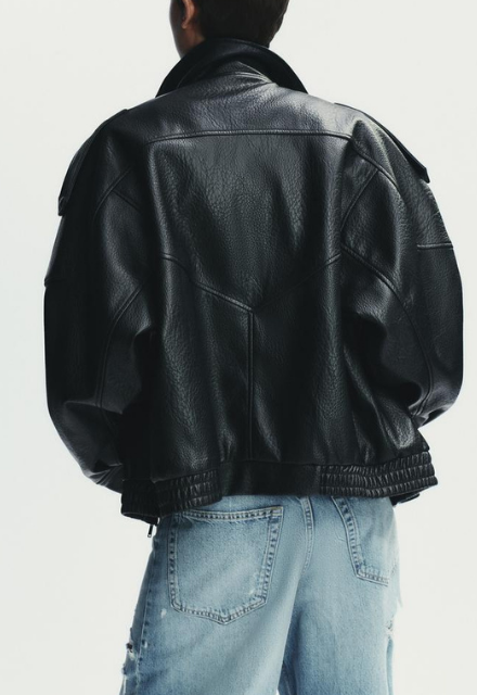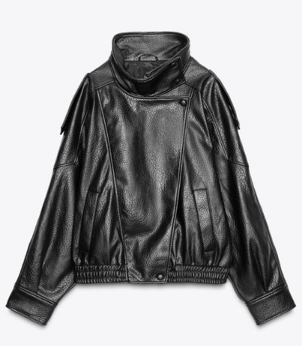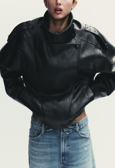 ZARA BNWT 2025. BLACK FAUX BIKER LEATHER JACKET ZIP. 4391/872/800