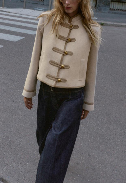 ZARA BNWT 2025. BEIGE TOGGLE SHOULDER PAD JACKET BLAZER. 8917/101/710