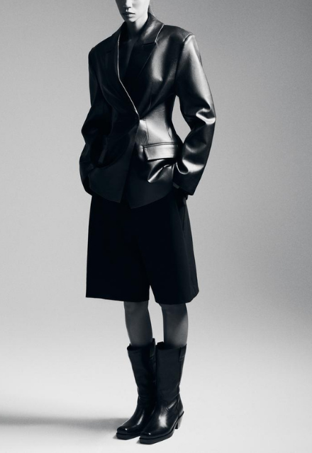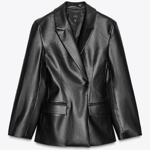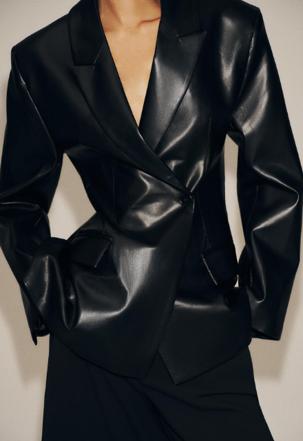 ZARA BNWT 2025. BLACK TAILORED FAUX LEATHER BLAZER LATERAL BUTTON. 1255/765/800