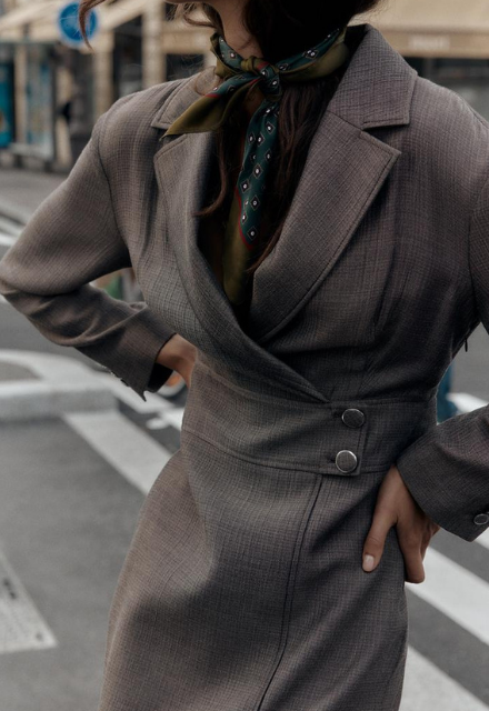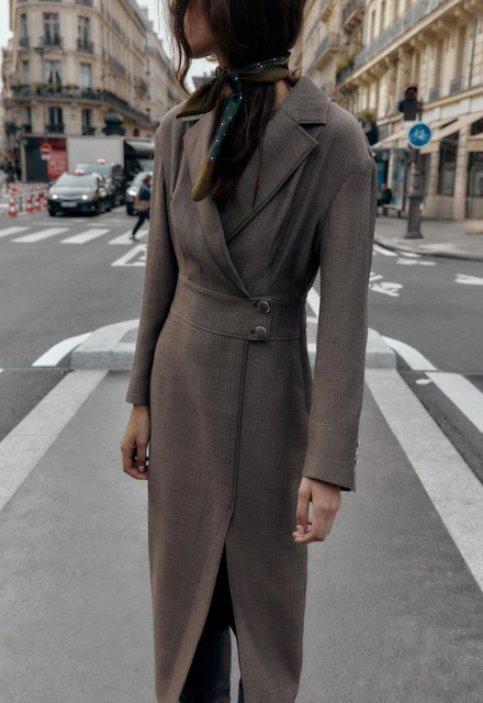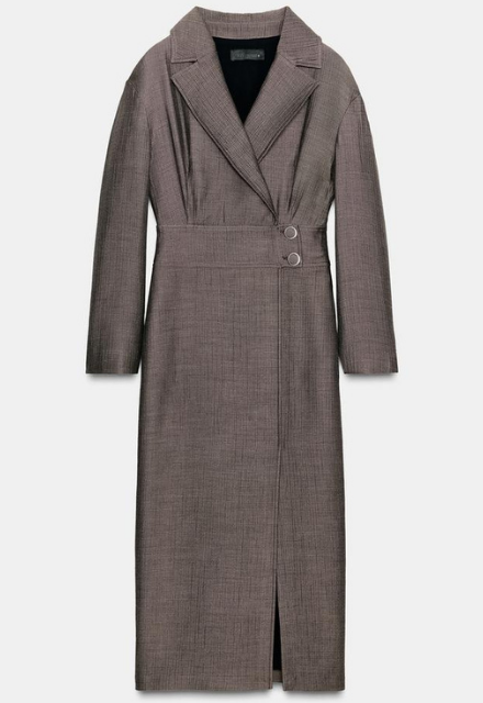 ZARA BNWT 2025. TAUPE GREY MIDI WRAP DRESS BLAZER LAPELS . 8933/569/832