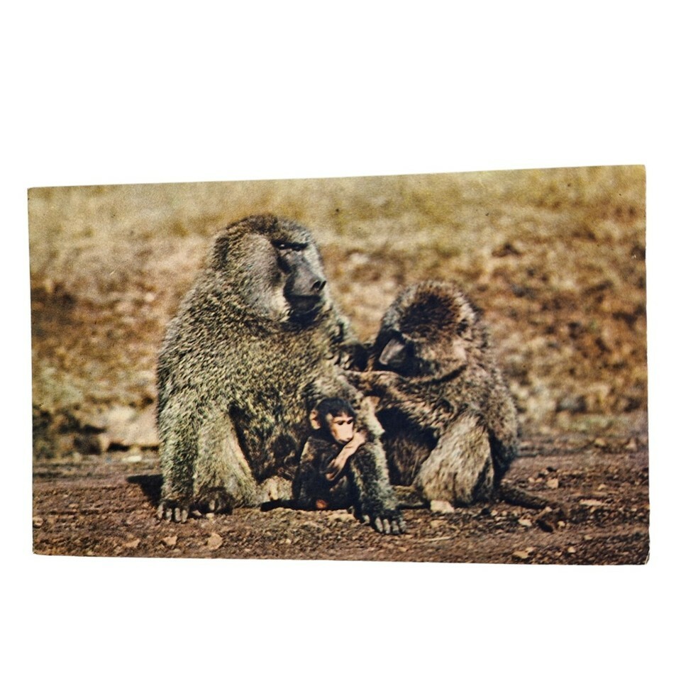 Postcard African Wild Life Baboon Family Monkey Ape Primate Chrome Unposted