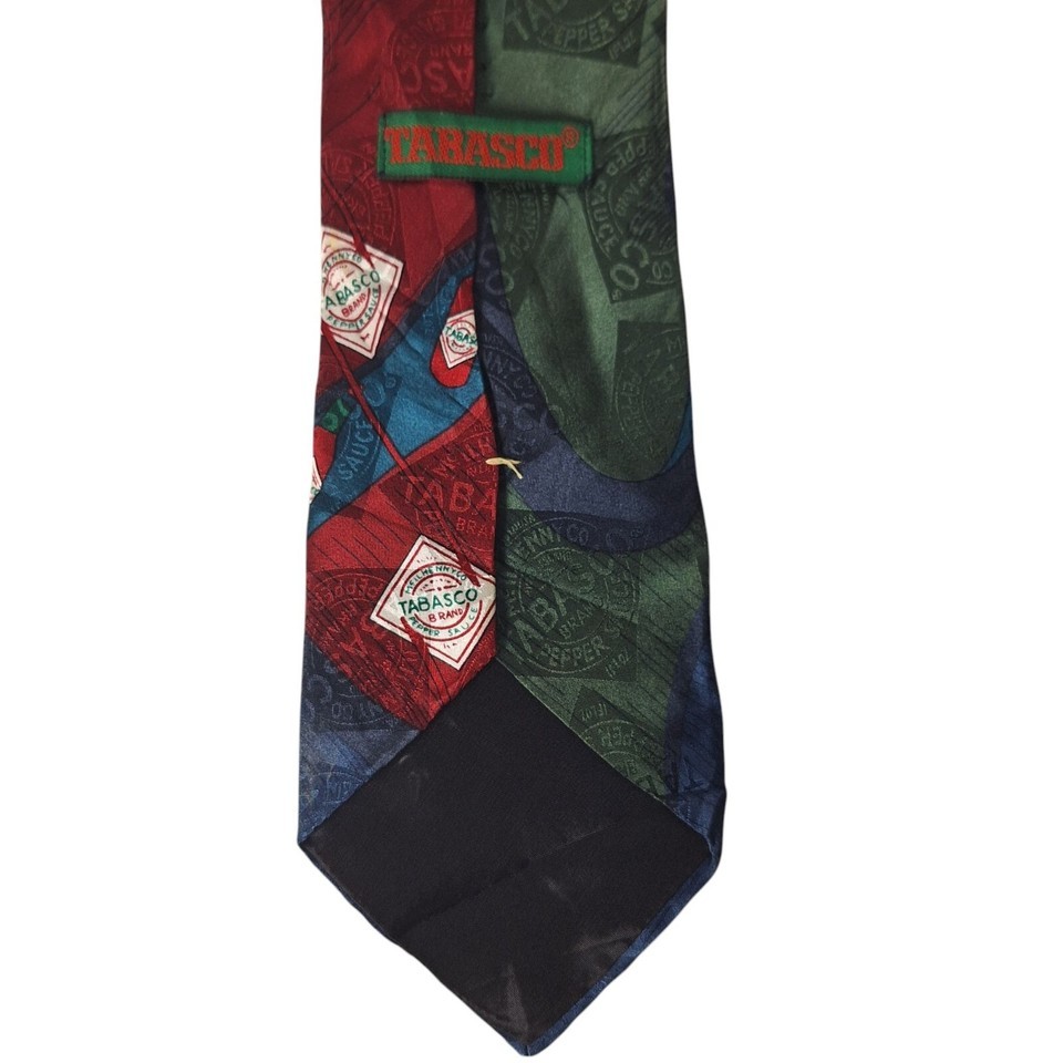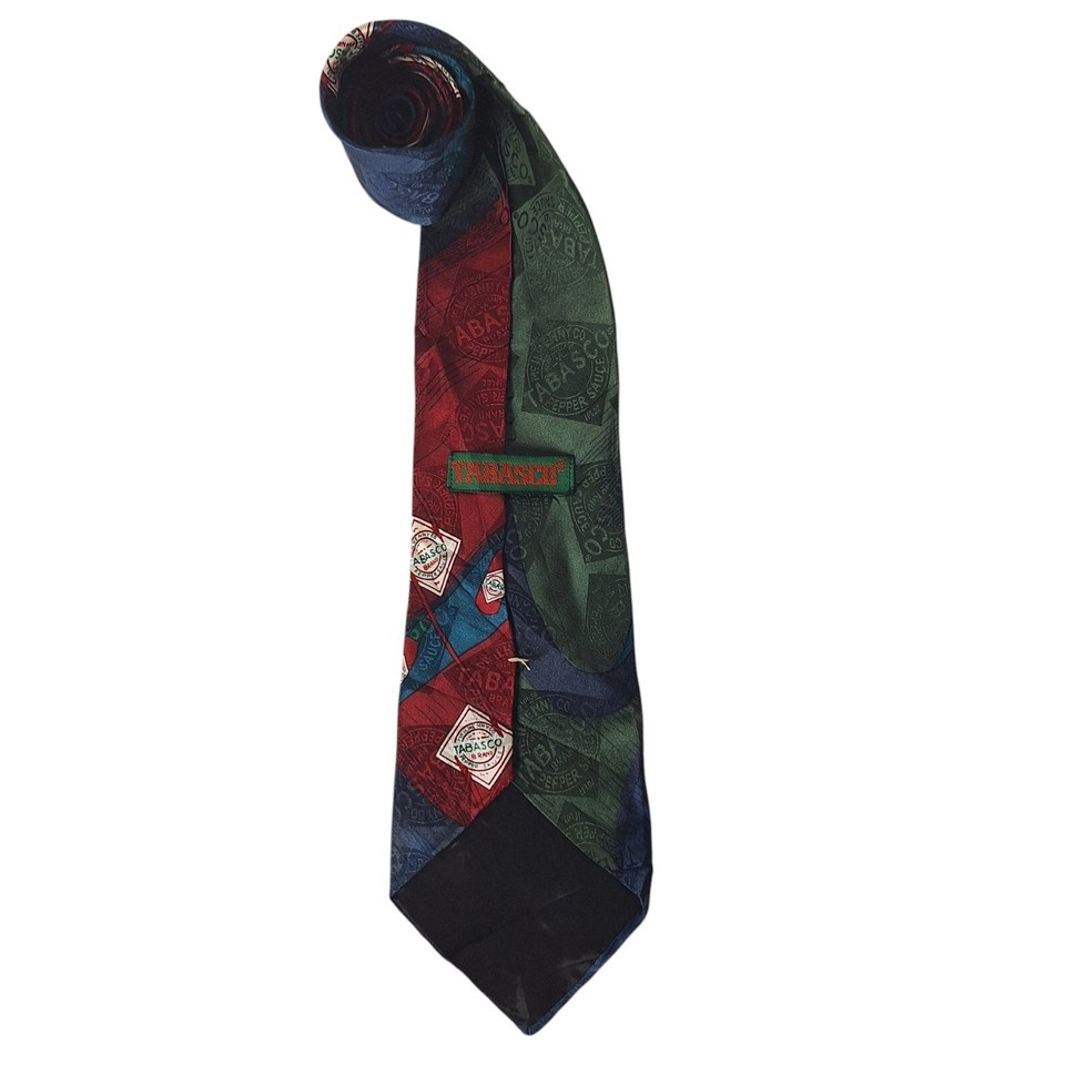 Tabasco Hot Pepper Sauce Blue Red Green Teal Novelty 100% Silk Necktie