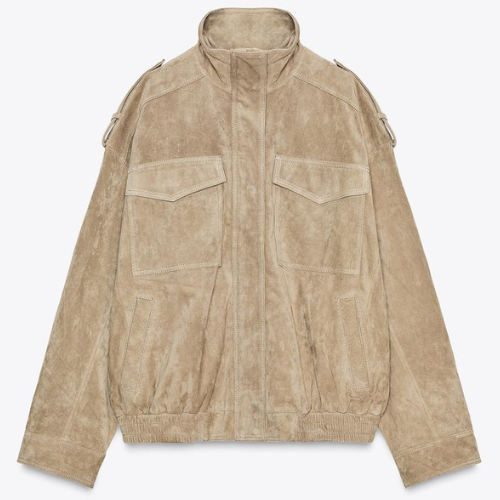 ZARA BNWT 2025. BROWN TAUPE SUEDE LEATHER JACKET BOMBER 4341/770/737