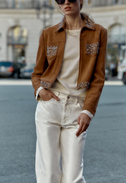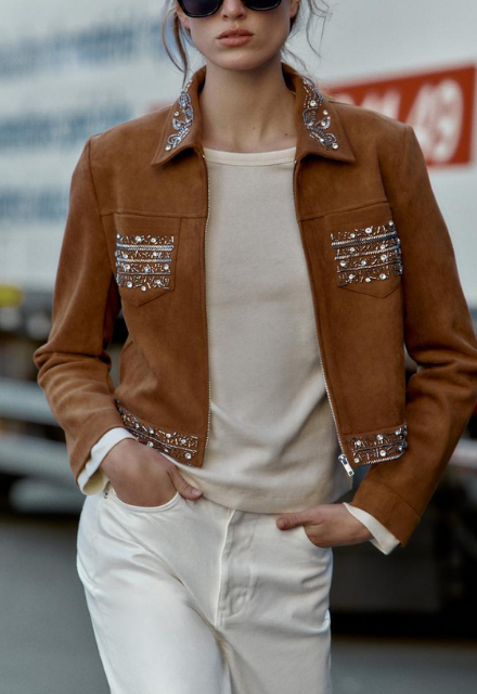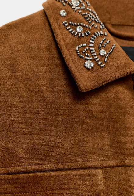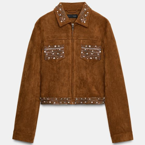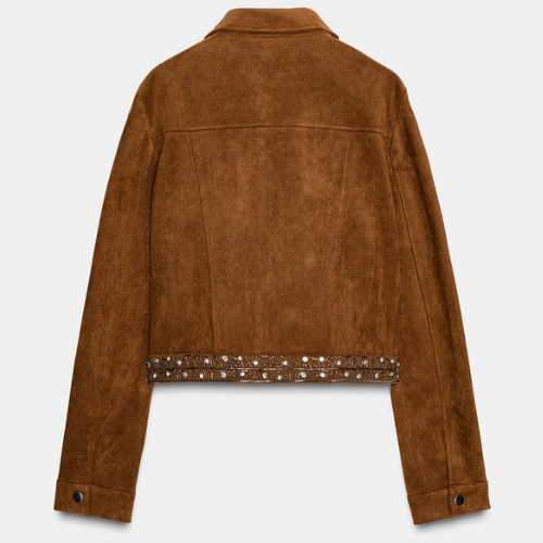 ZARA BNWT 2025. BROWN EMBROIDERED FAUX SUEDE STUDDED JACKET COAT. 4344/631/700