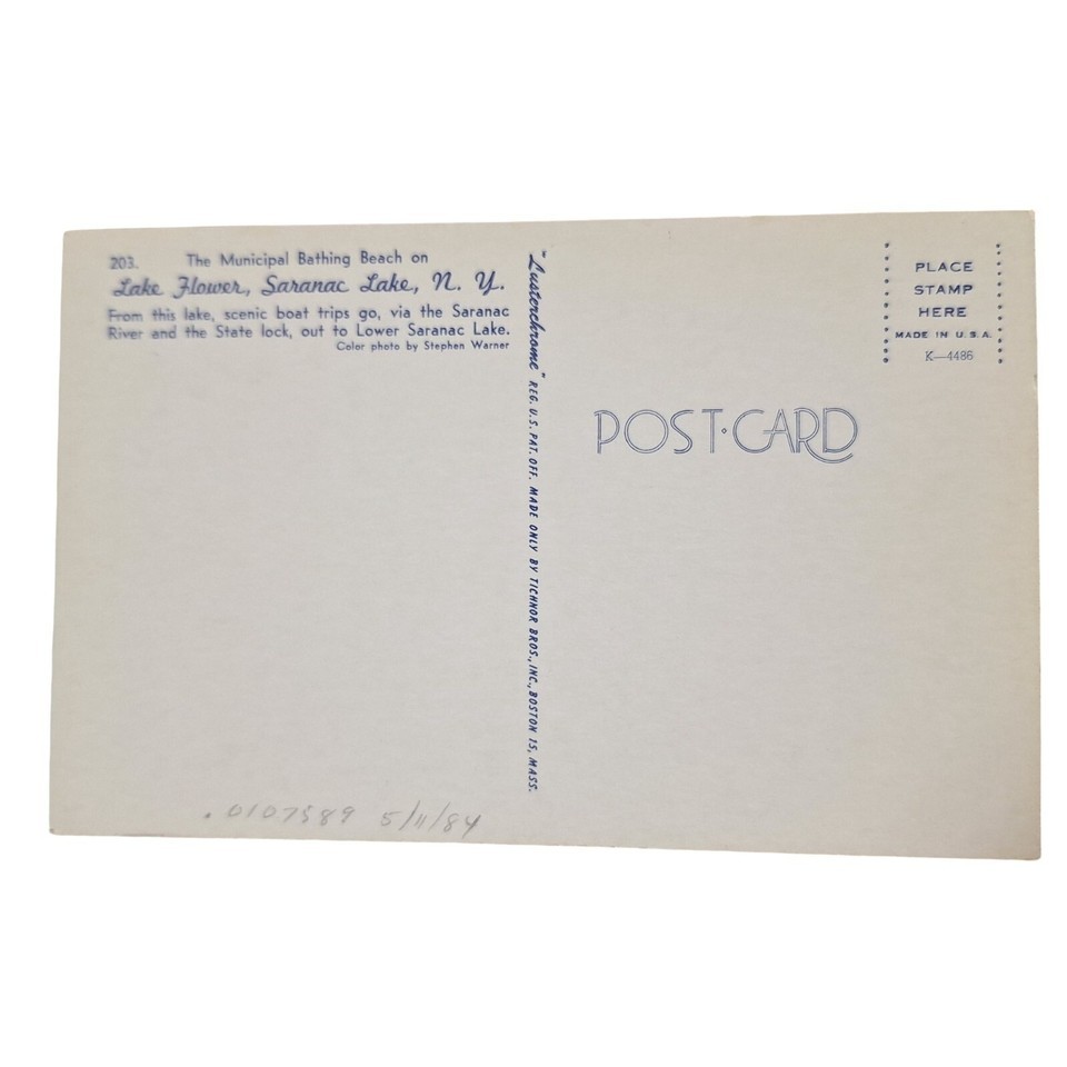 Postcard The Municipal Bathing Beach On Lake Flower Saranac Lake New York Chrome