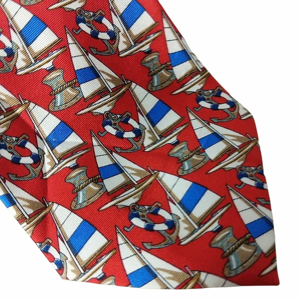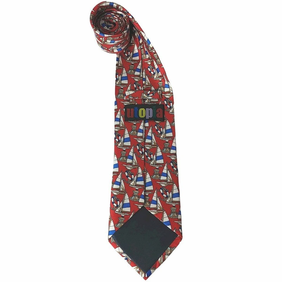 Utopia Sailboat Anchor Flotation Device Nautical Ocean Sea Novelty Silk Necktie