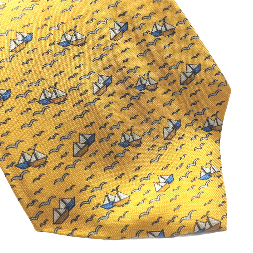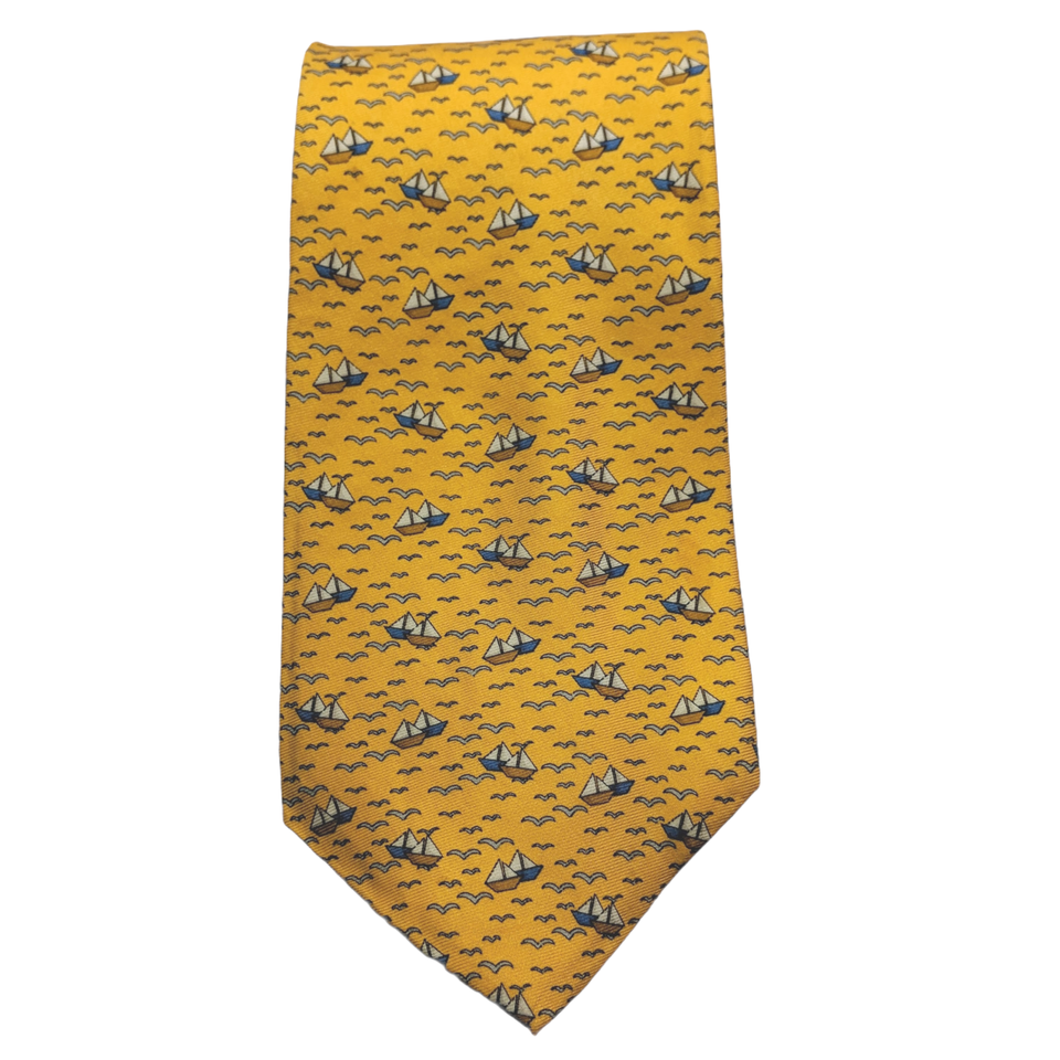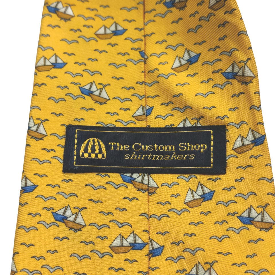 Sailboats High Seas Ocean Sea Gulls Yellow Novelty Silk Necktie