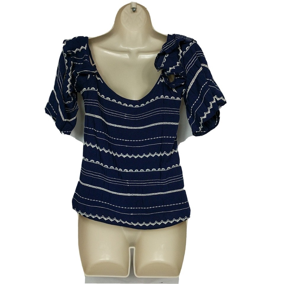 Saks Fifth Avenue Cold Shoulder Top Size XS Blue White Striped Bell Sleeve
