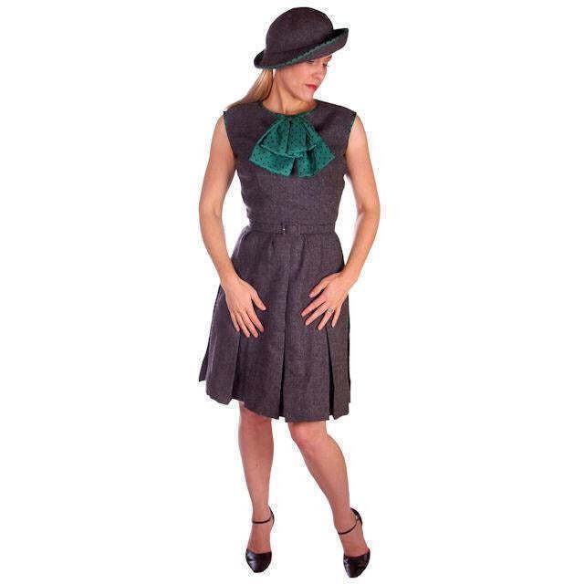 Nina Ricci VTG 1950s Paris Couture Gray Wool Dress Suit w/ Matching Hat sz Small