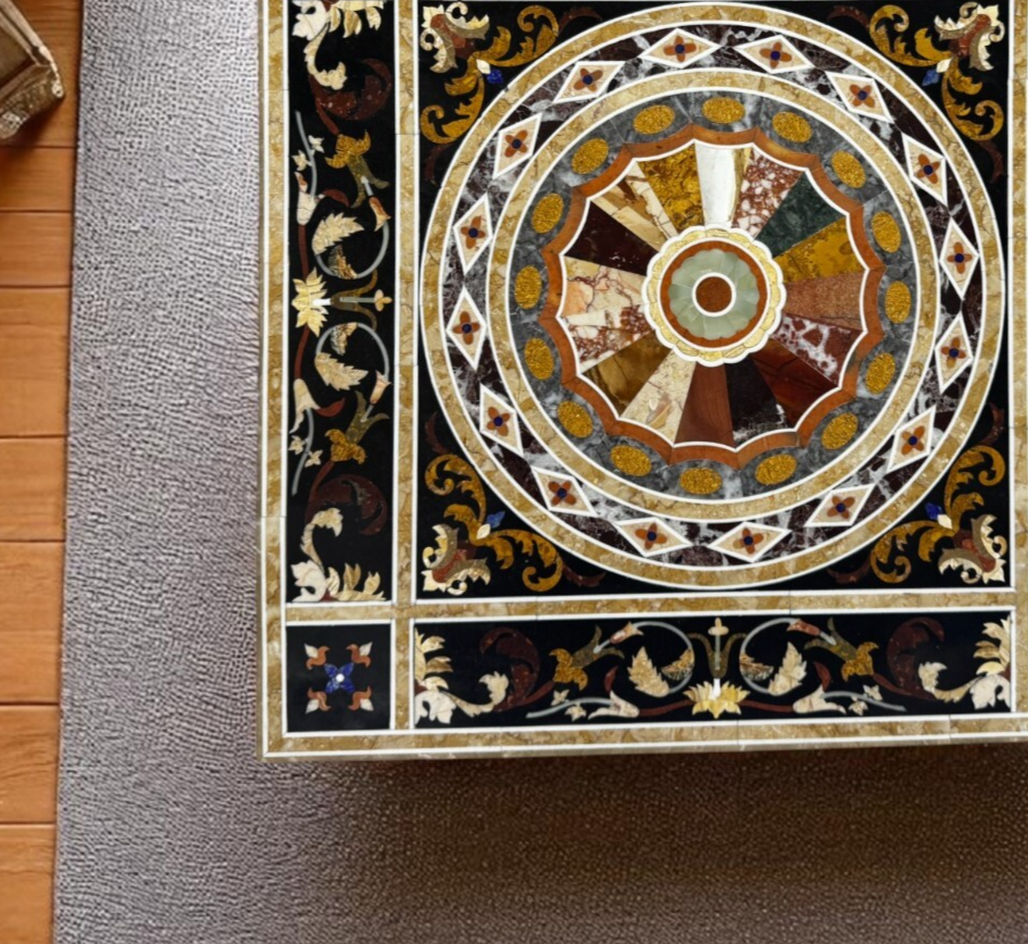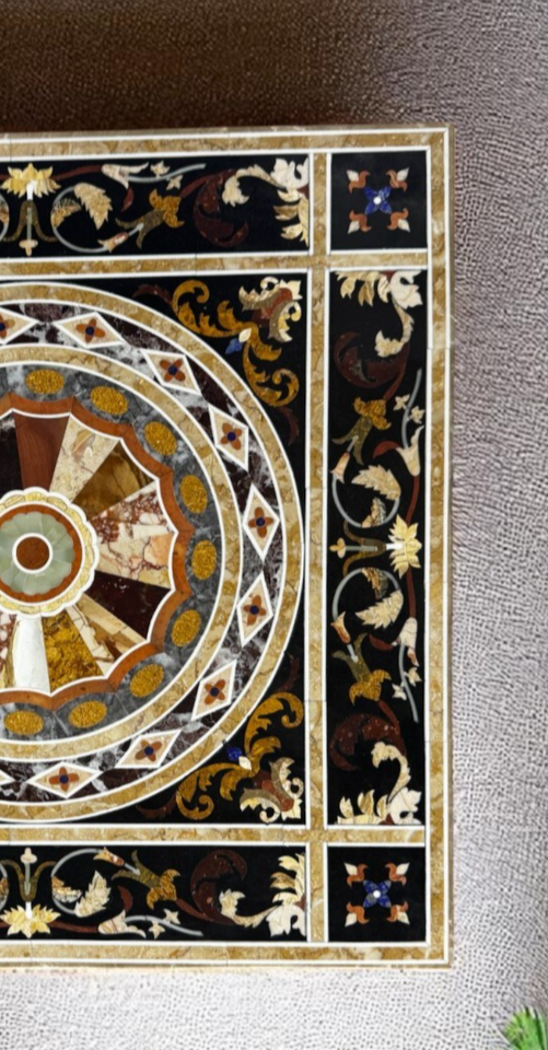 Am interessantesten erwarten Sie von diesem Pietre Dure (Marmorintarsien mit hartem Stein), alle Designs, die von den Handwerkern gemacht werden, sind reine Fantasie des Künstlers, sobald sie hergestellt wurden. Sie konnen kein anderes genau gleich machen, es wird ahnlich aussehen, aber nicht gleich sein.