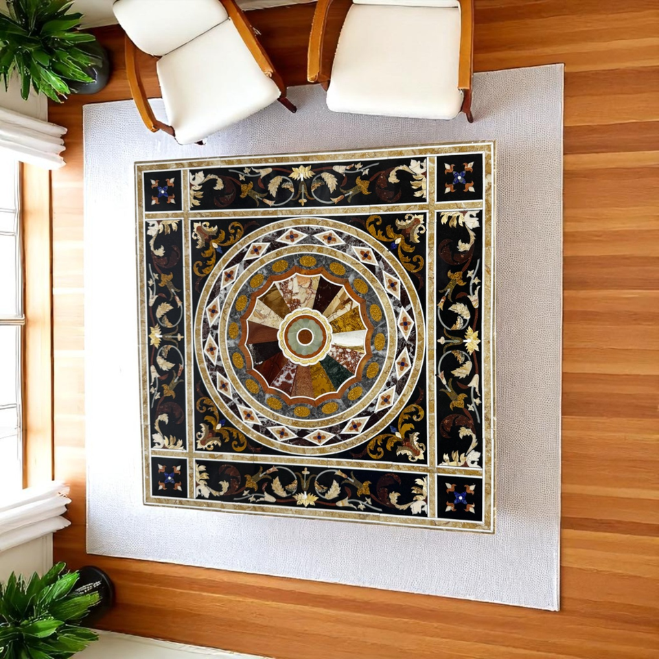 Elegant Black Marble Square Dining Table Handmade Mosaic Cu...- show original...