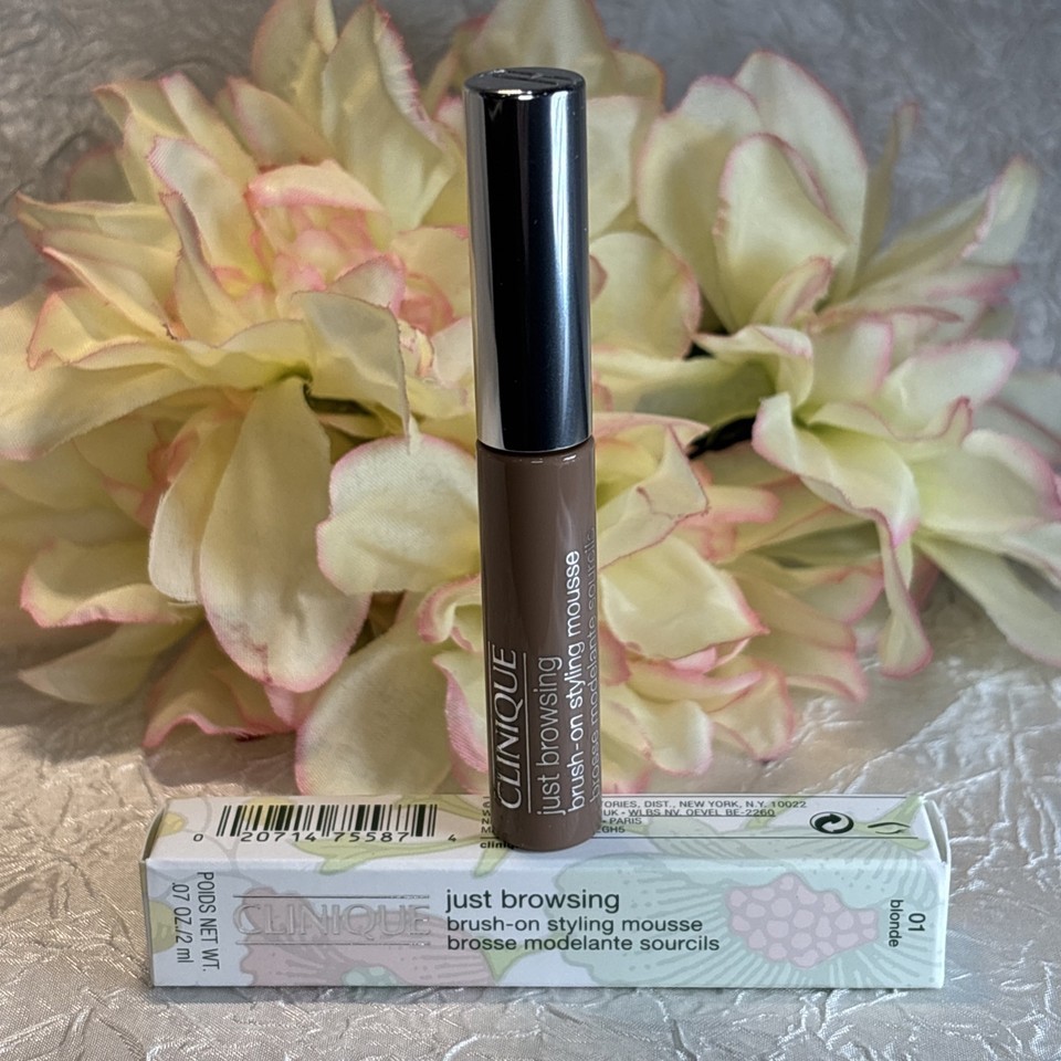 CLINIQUE JUST BROWSING BRUSH ON STYLING MOUSSE EYE BROW GEL 01 Blonde NIB FreeSh.