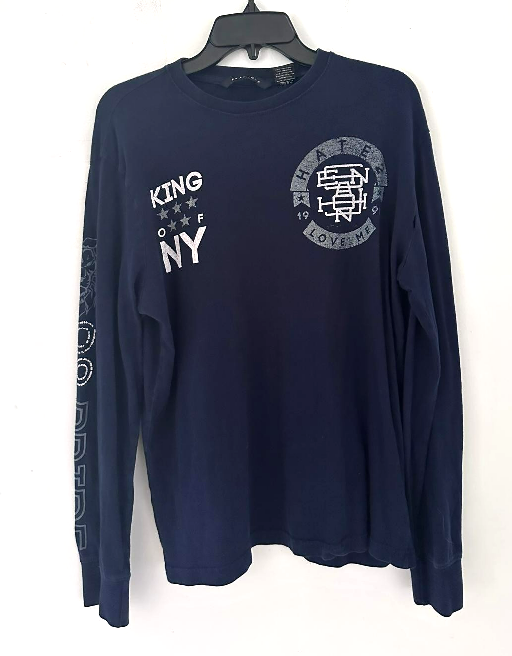 Sean John Men’s Large Blue Long Sleeve Graphic Tee King NY Lettering Sleeve