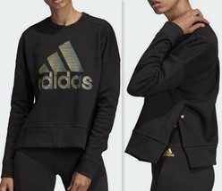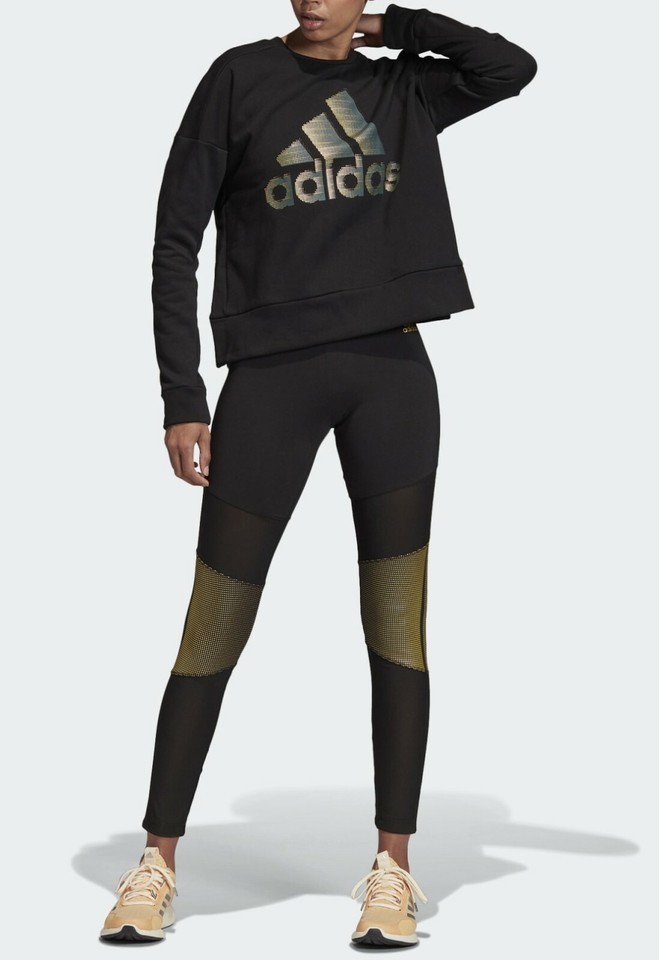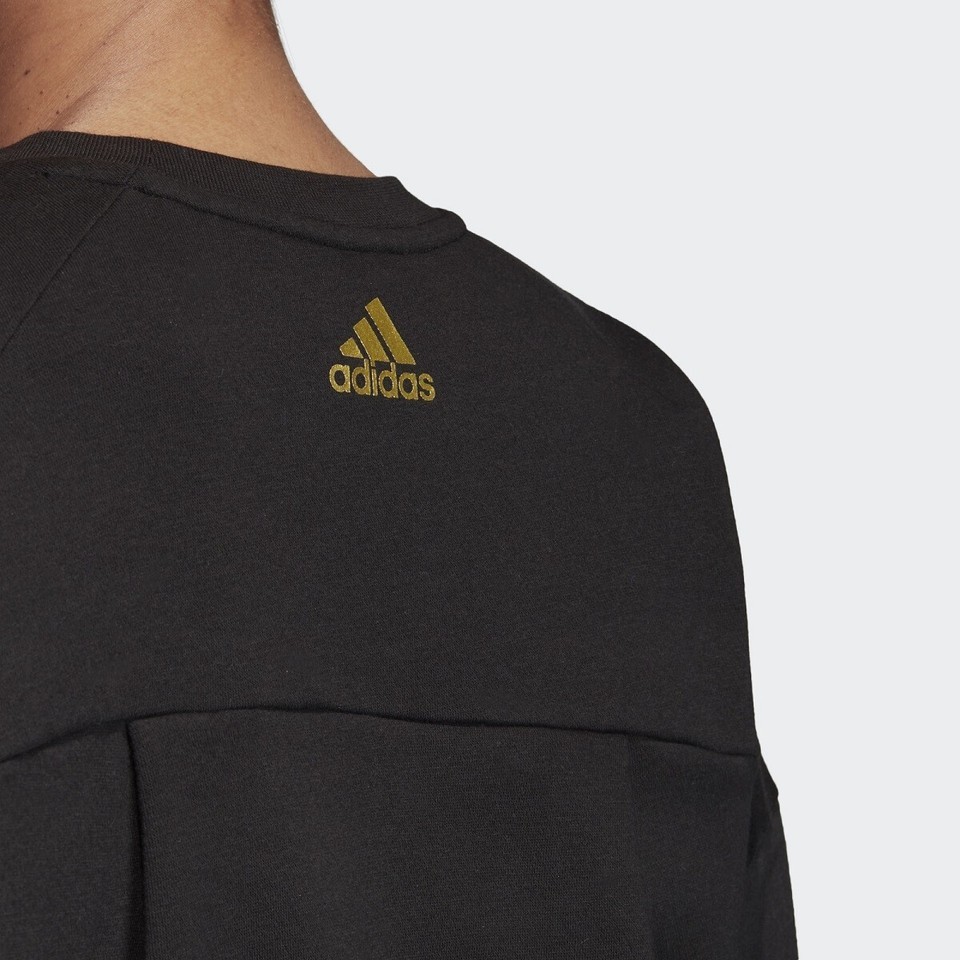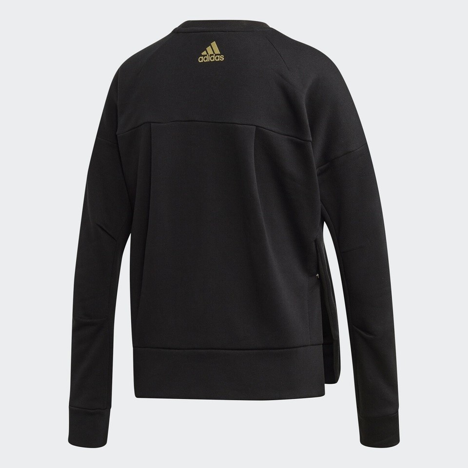 Womens adidas ID Glam Crew Neck Sweatshirt Long Sleeve Top, Black Size M