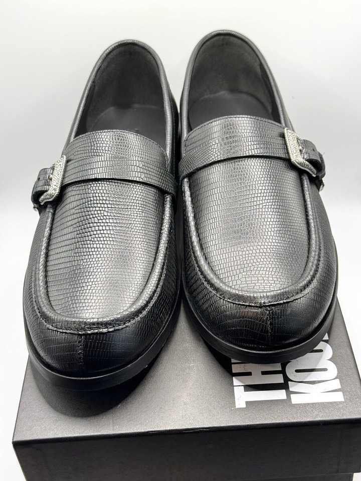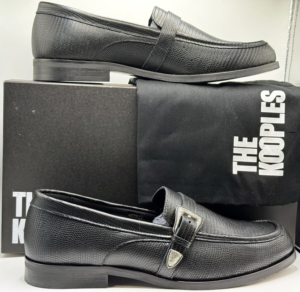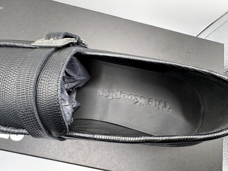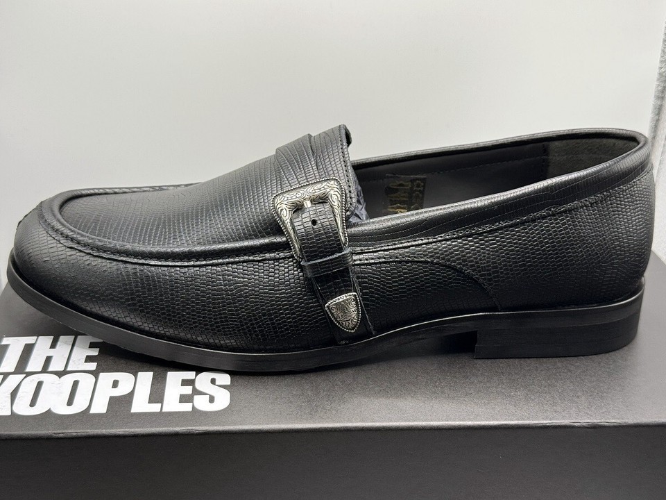 The Kooples Men's Leather Loafers with Western Buckle, Black Size 43 (US 10)