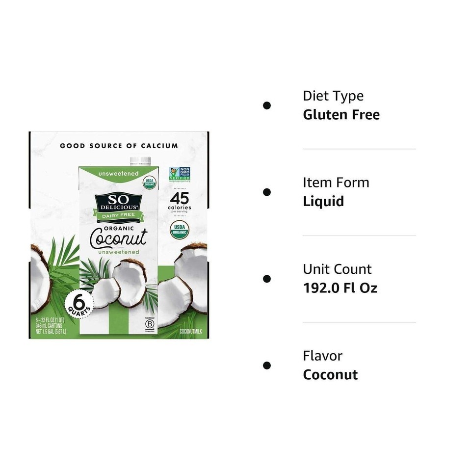 SO DELICIOUS Organic Coconut Milk, Gluten, and 27 similar items