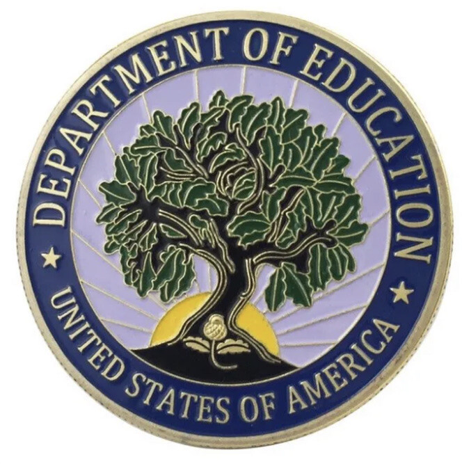 This is a great looking United States Department of Education challenge coin. Coin has reeded edges and is about 1 9/16" in diameter. All details are raised lettering and gold plated. Coin is contained in an acrylic airtight holder.