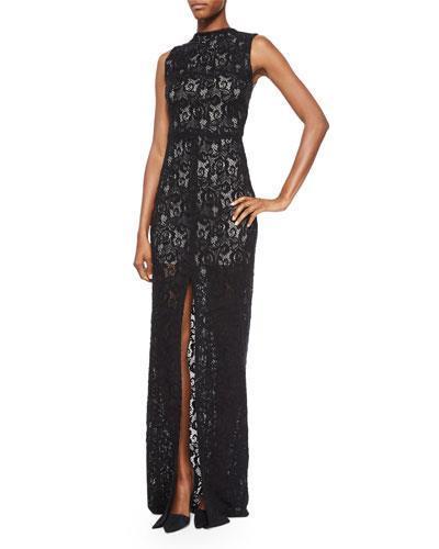 New AUTH Alice Olivia Gisela High-Neck Lace Contrast Gown in Black $398