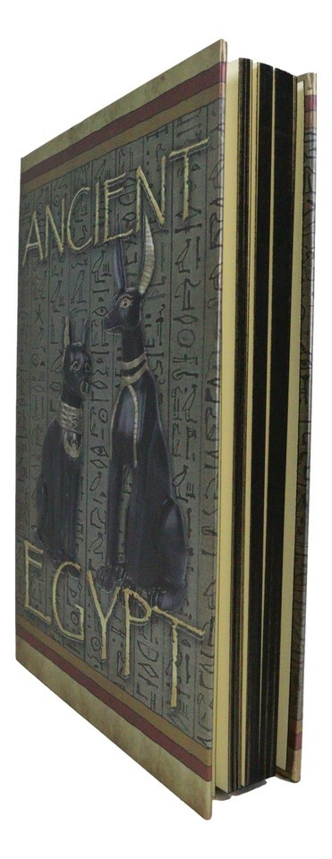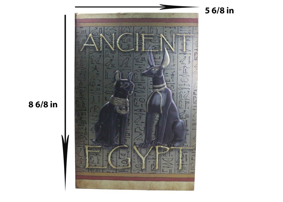 ? This stylized journal features a layer of embossed Egyptian hieroglyphics for a very dimensional look and feel. The journal feels good to hold and has a royal classical Egyptian colors of gold red and more on the background to accentuate the designs greater. The imprinted image features the god Anubis and goddess Bastet at the front cover. The words Ancient Egypt marks the top and bottom of the deities.