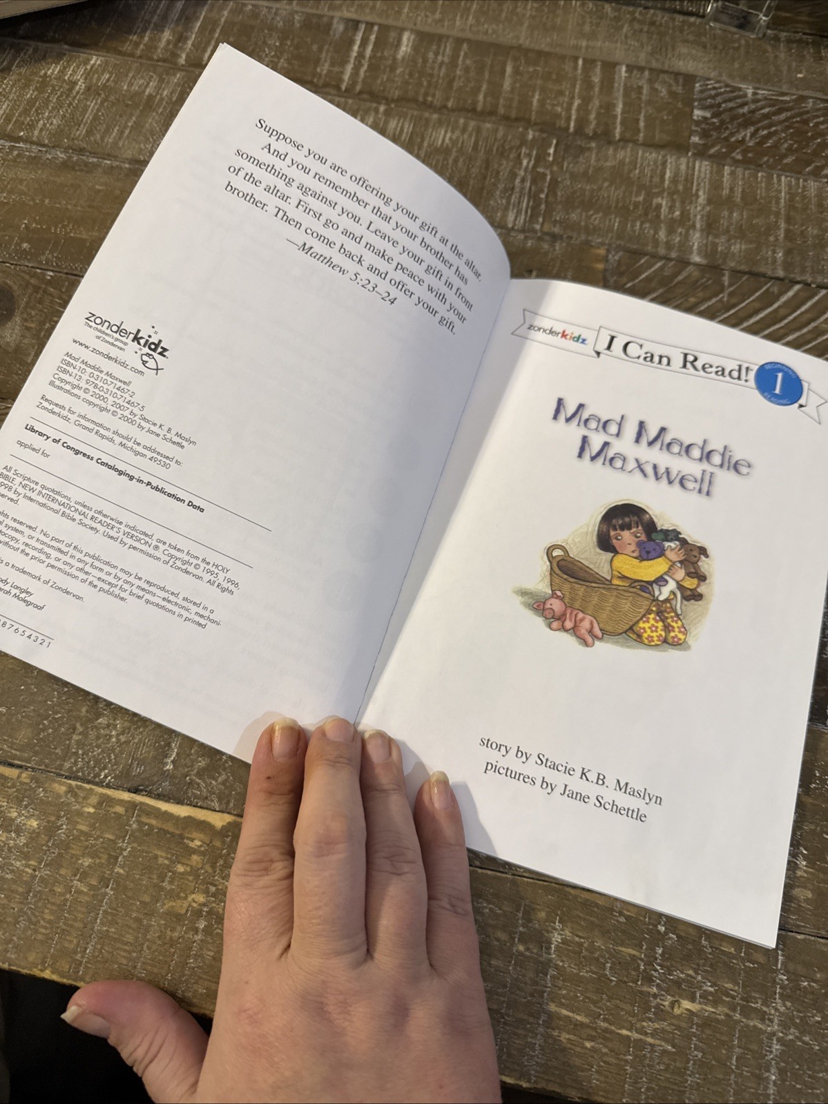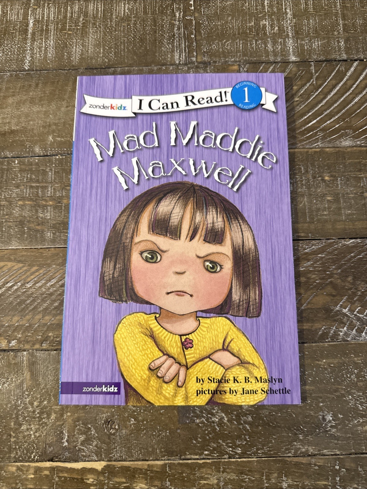 The product is a trade paperback book titled "Mad Maddie Maxwell" from the "I Can Read! Series" published by Zonderkidz in 2007. Written by Stacie K. Maslyn, the book features illustrations by Jane Schettle and falls under the genre of Juvenile Fiction. With a topic revolving around religious and Christian values, emotions, and virtues, this book is suitable for early readers and offers stories in verse format. The book is 32 pages long and measures 9 inches in length, 6 inches in width, and 0.3 inches in height, weighing 2.6 ounces.