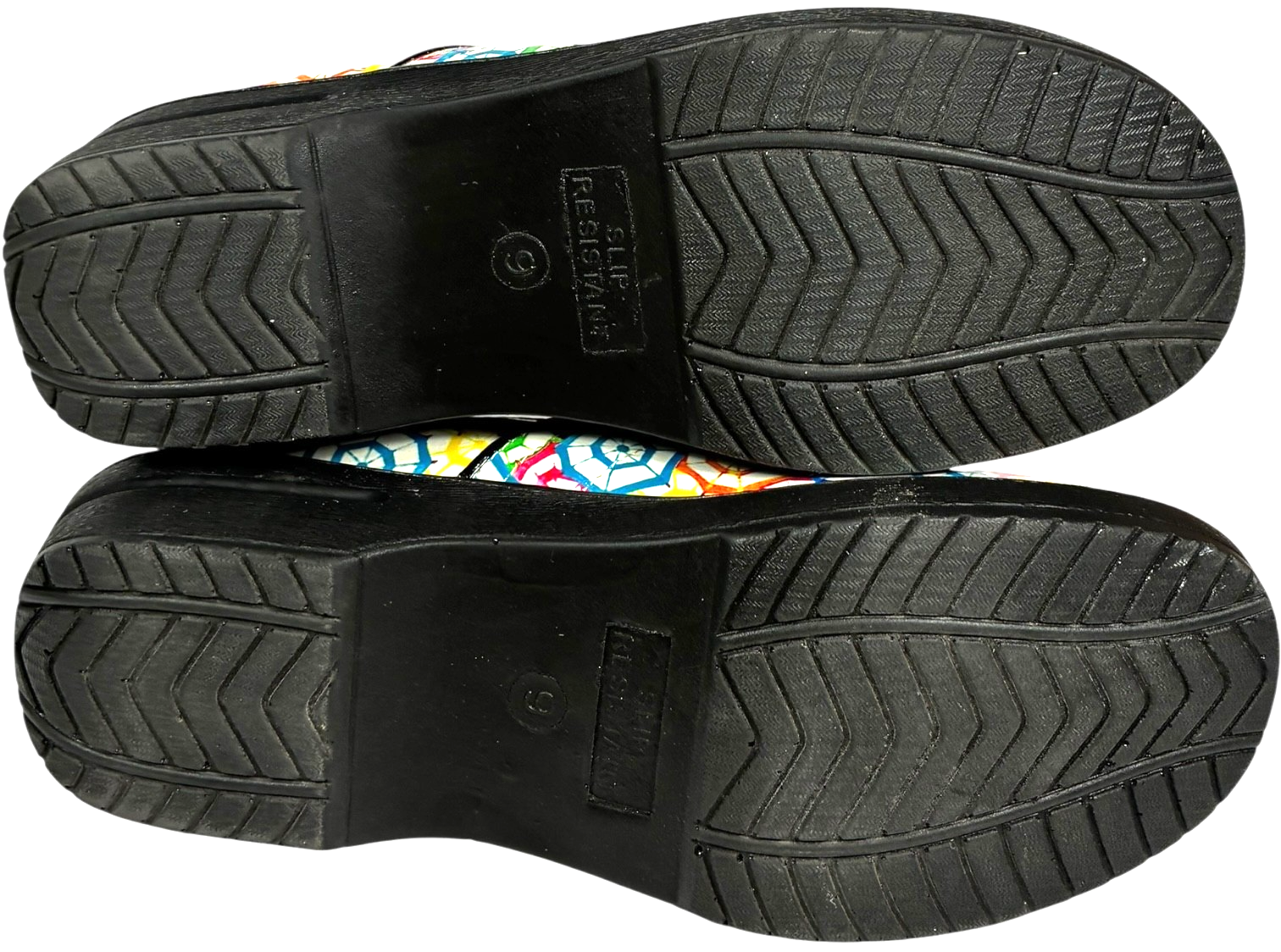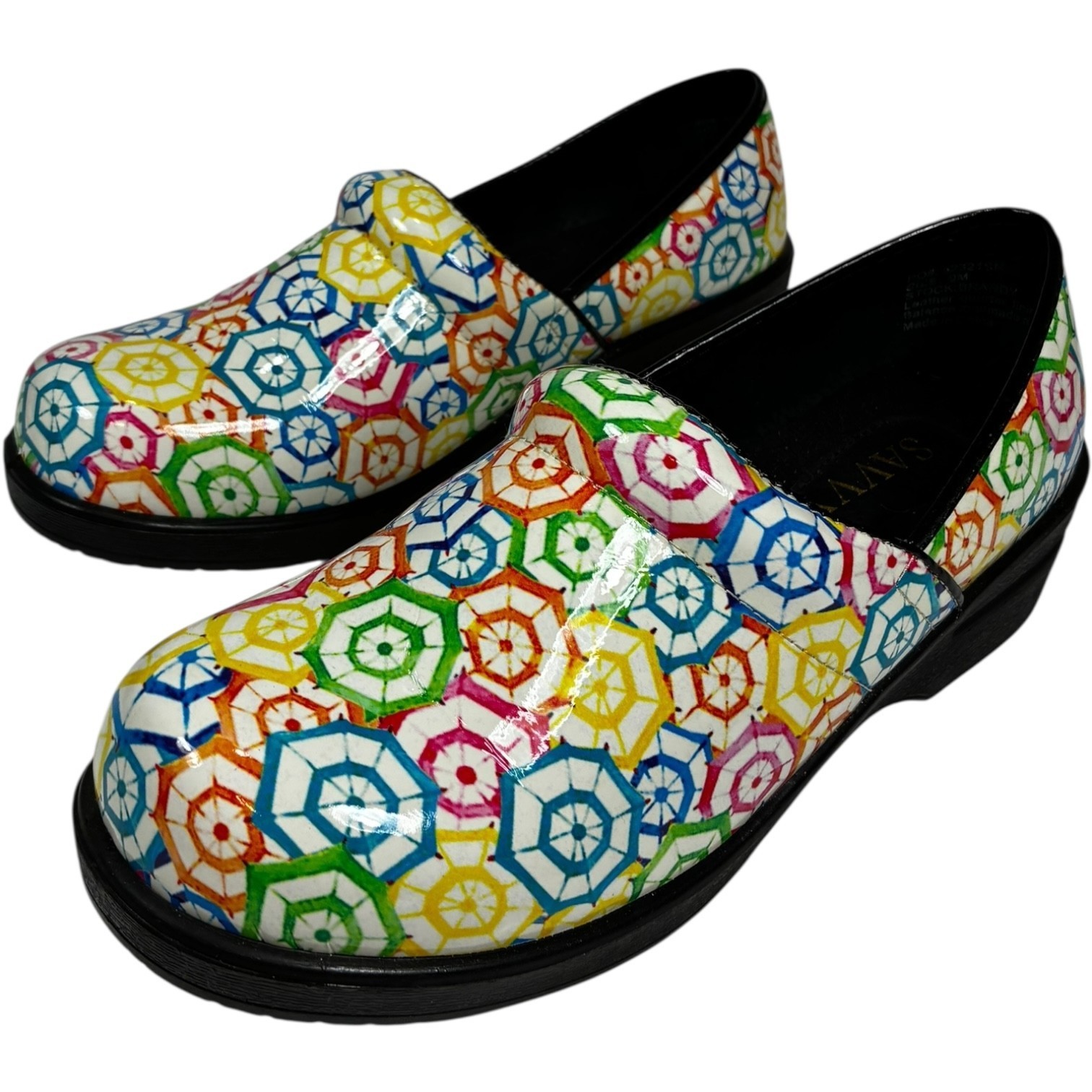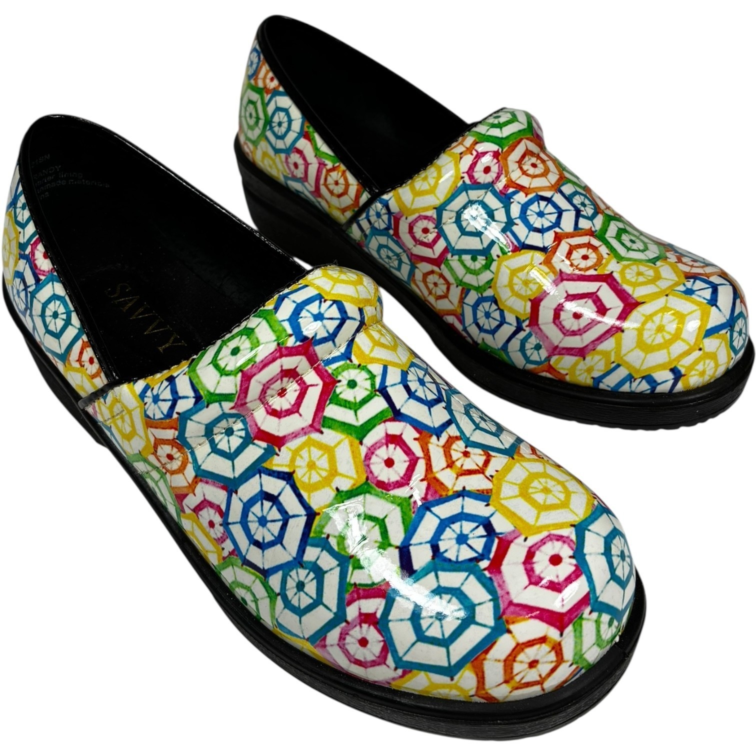 Savvy women's brandy parasol white print nursing shoes clogs 82321SN size 9M