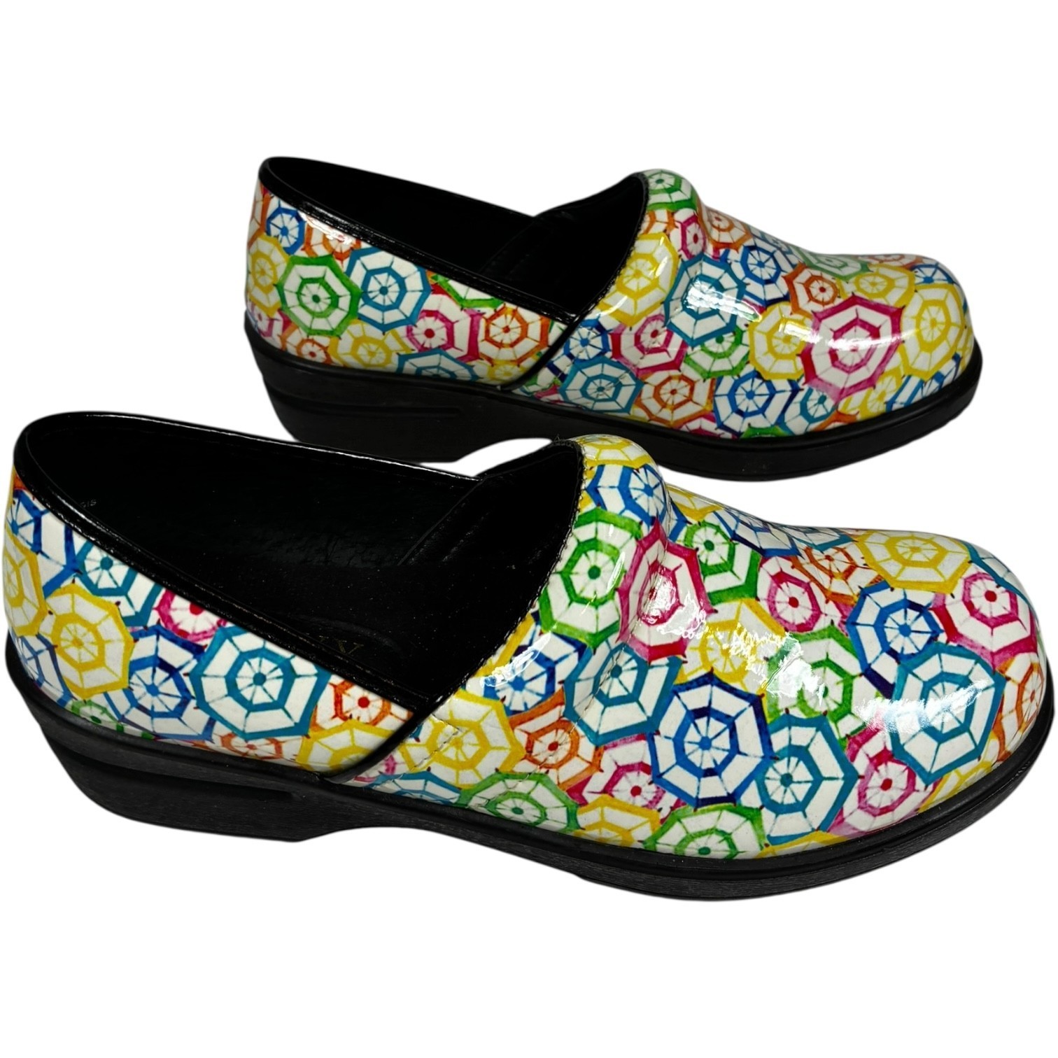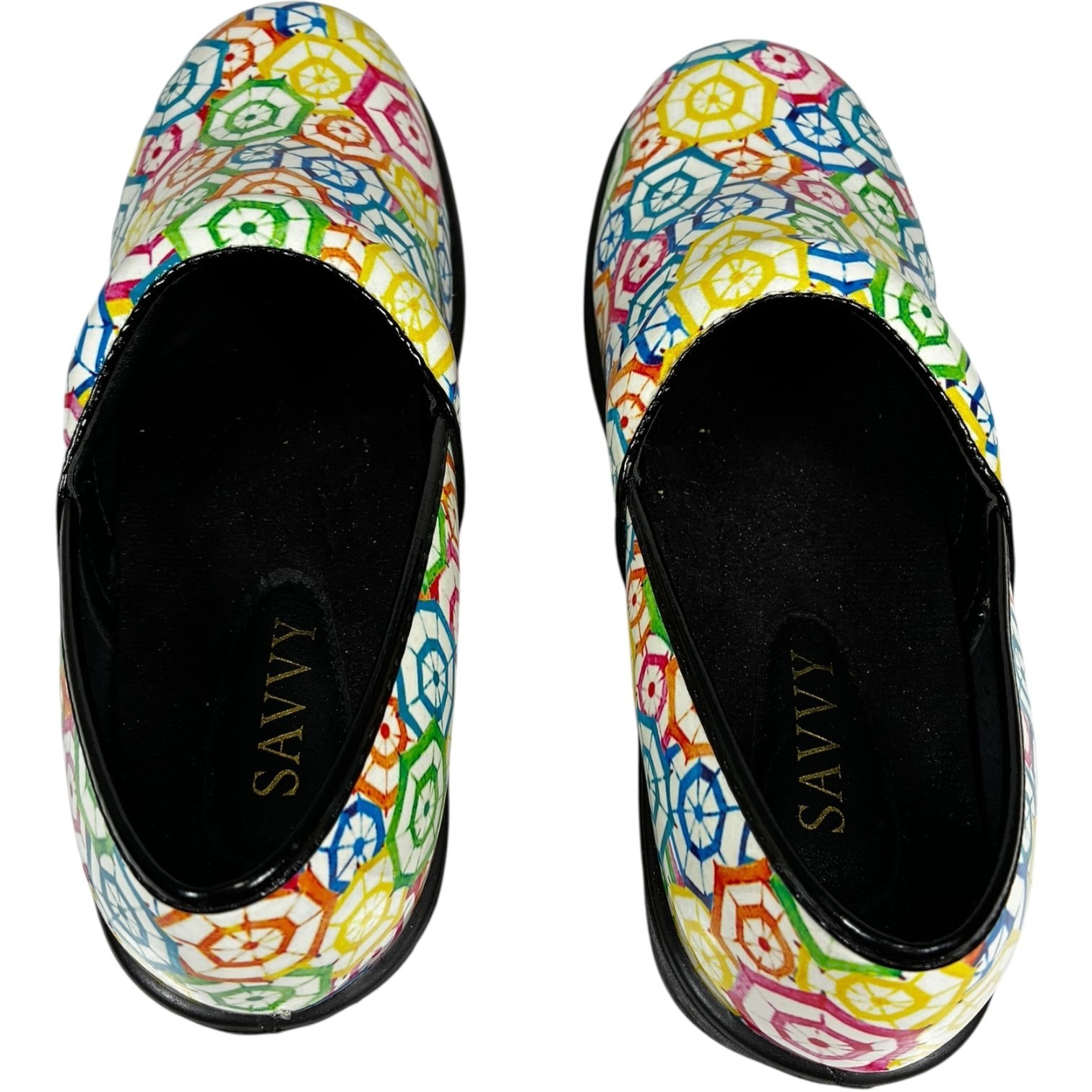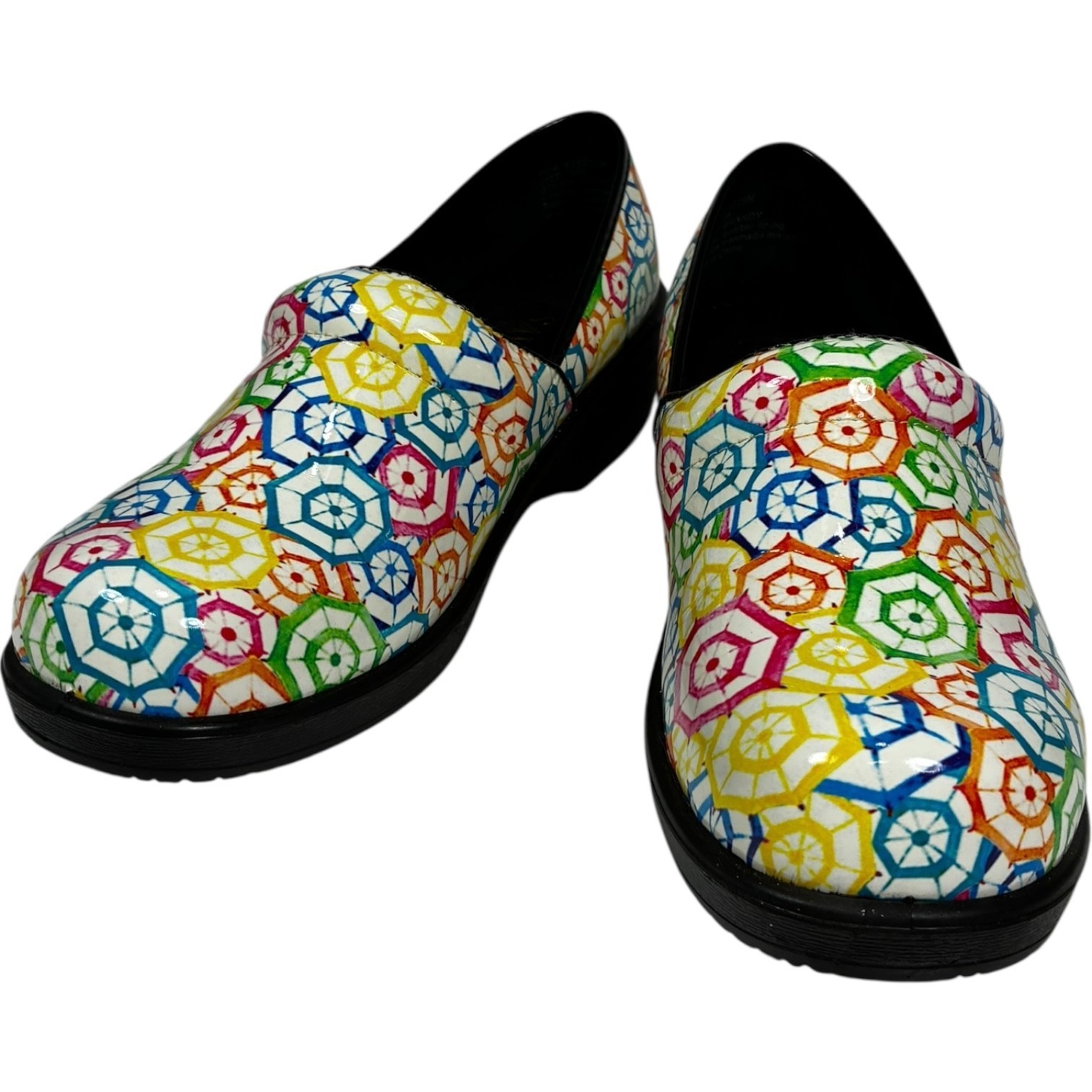 Savvy women's brandy parasol white print nursing shoes clogs 82321SN size 9M