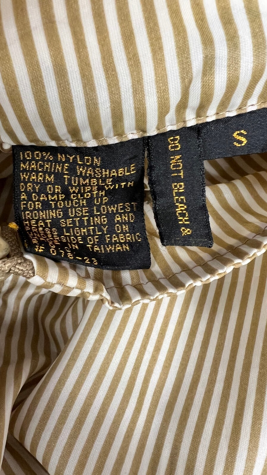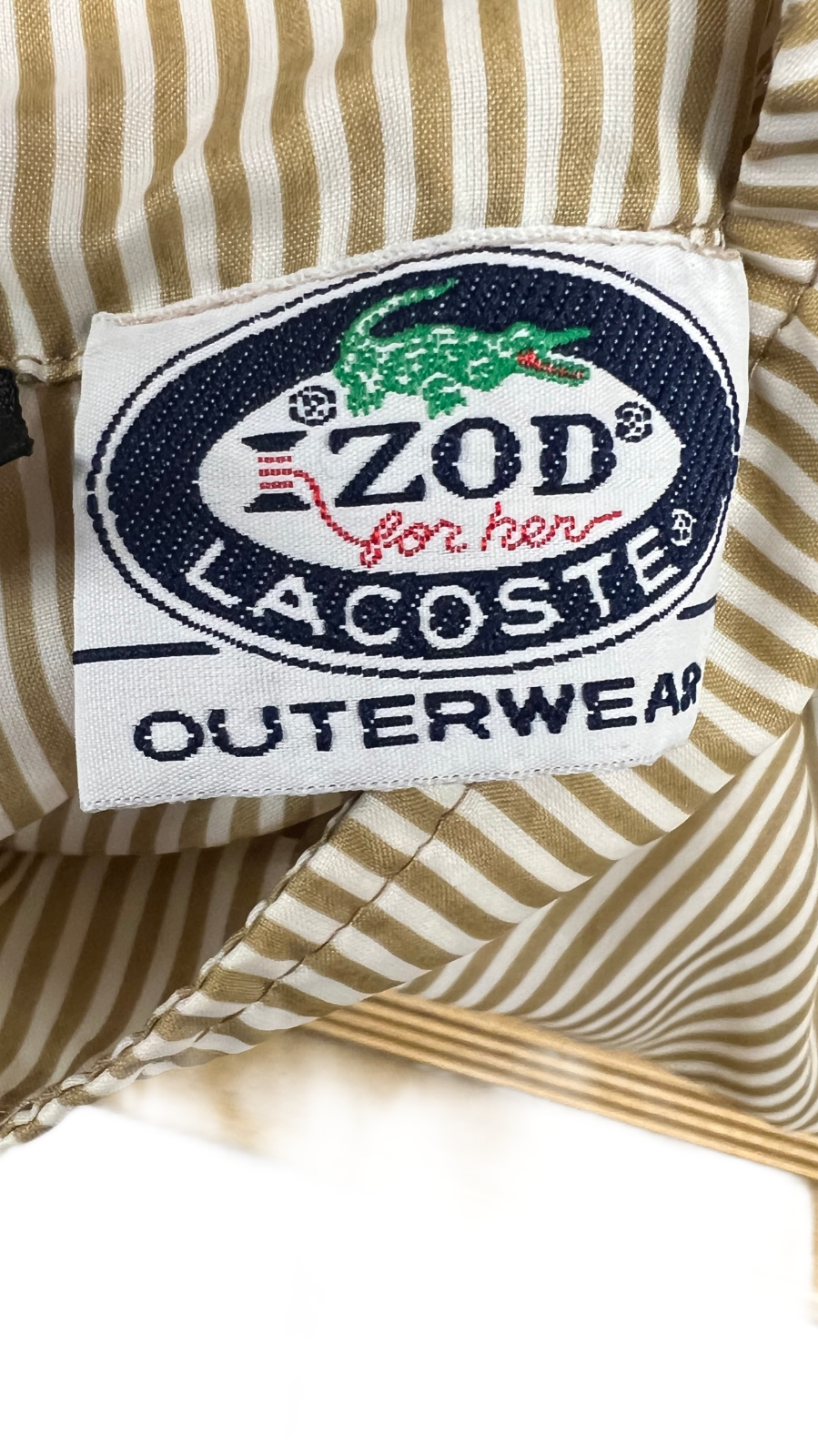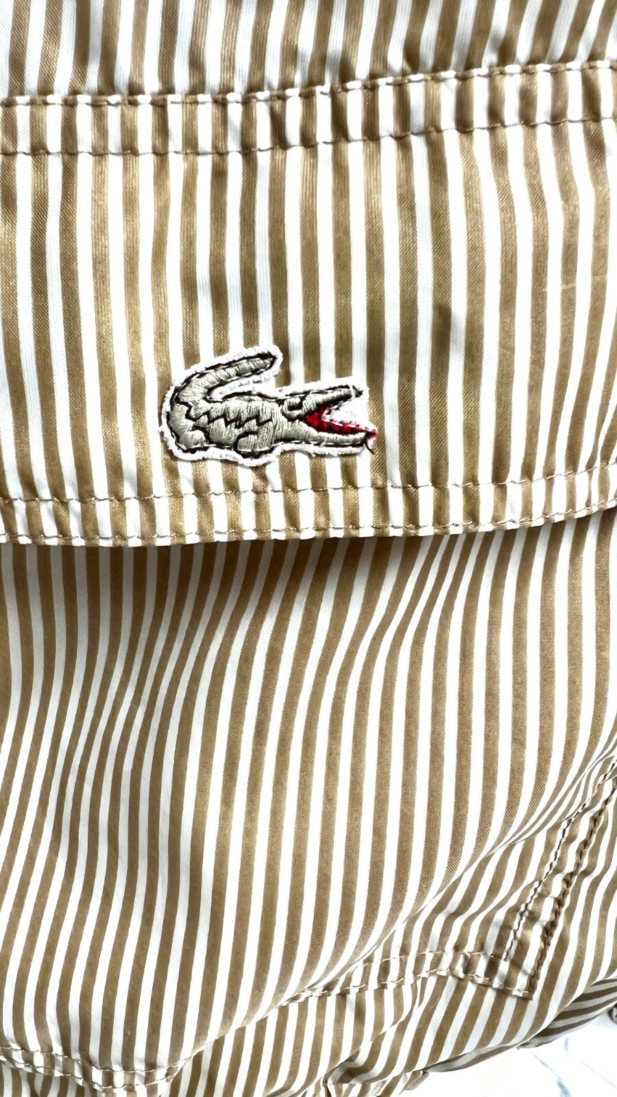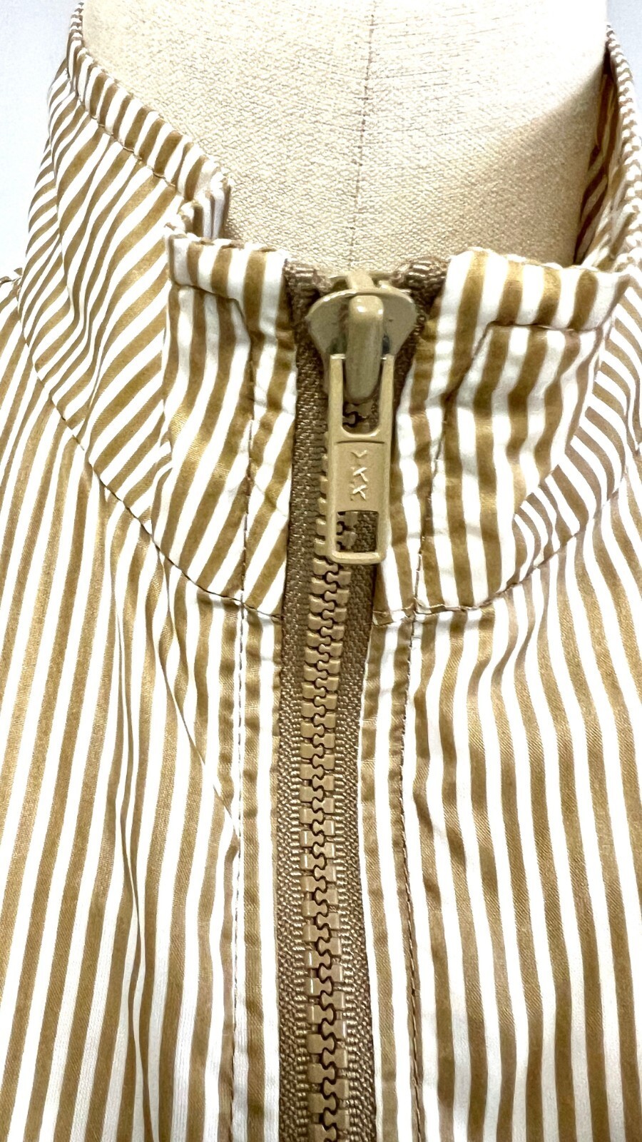 Vintage IZOD LACOSTE Gold and white striped NYLON GOLF WINDBREAKER JACKET with Beige ALLIGATOR , putting it as vintage 1970s, marked Small.