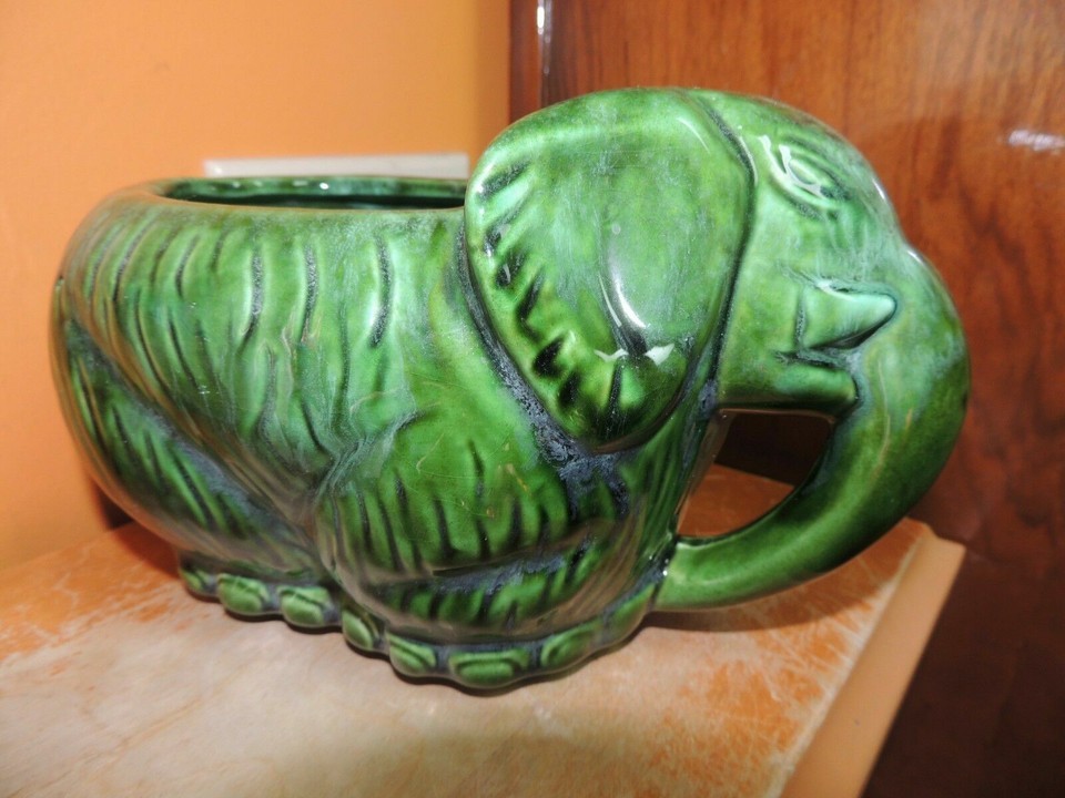 Elephant Planter 8.5x5x5" Ceramic green drip glaze Art Pottery U.S Vase