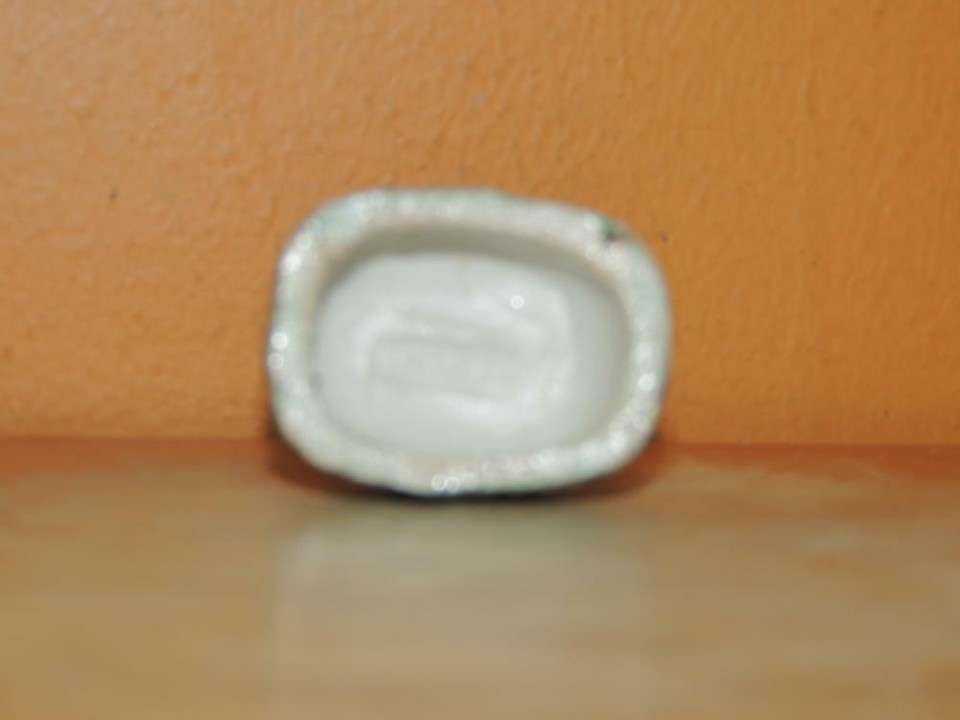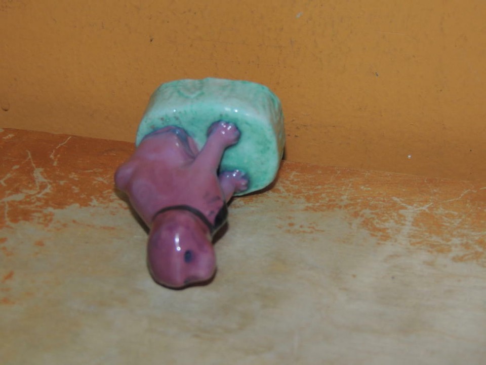 Chinese Mud Dog 2.5"+ marked China Mudman Antique c1910 purple green plinth RARE