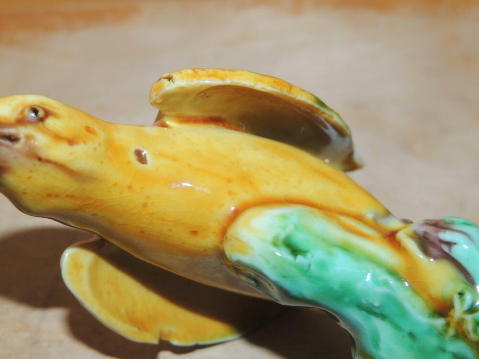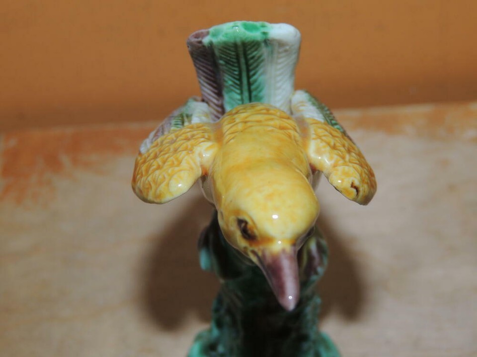 Chinese Mud Bird 3.5" mark China Mudman Antique c1910 bird detailed sancai sibia