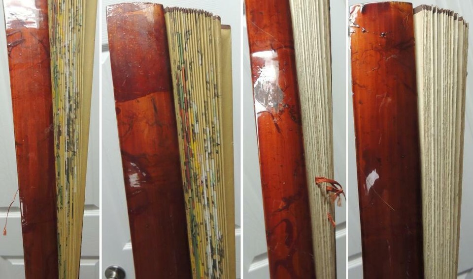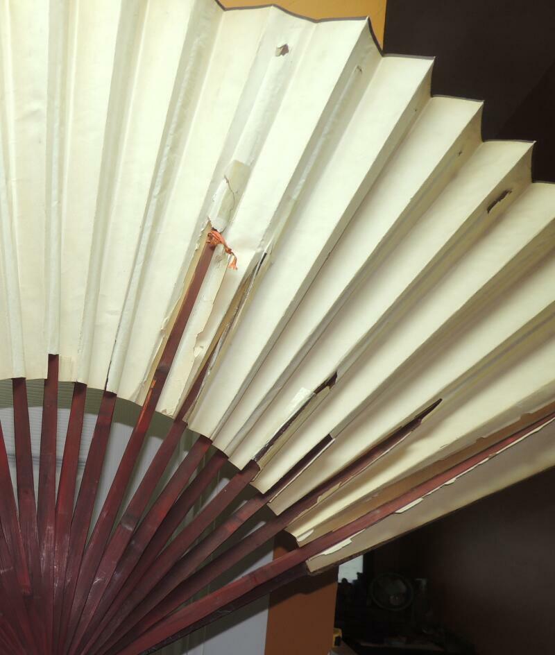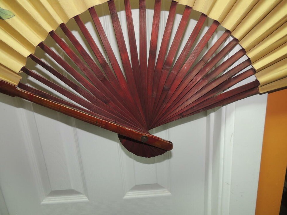 Chinese Fan 30"x52" Painted Cranes Signed fabric paper bamboo Vintage Antique