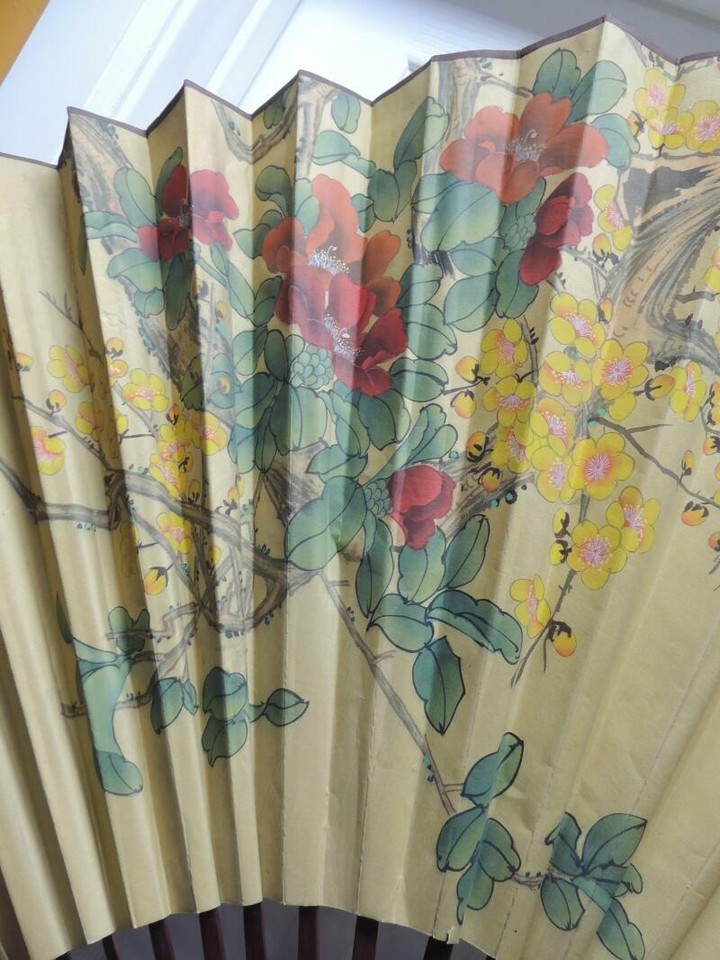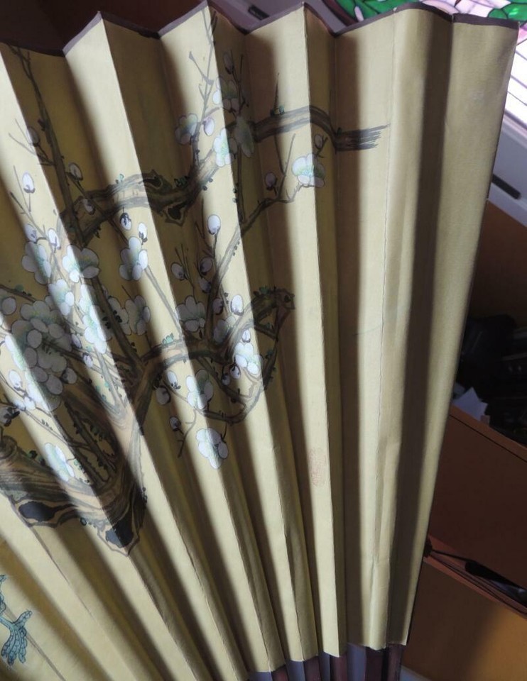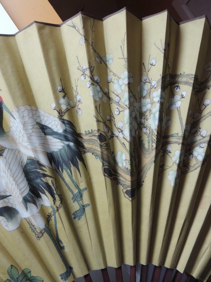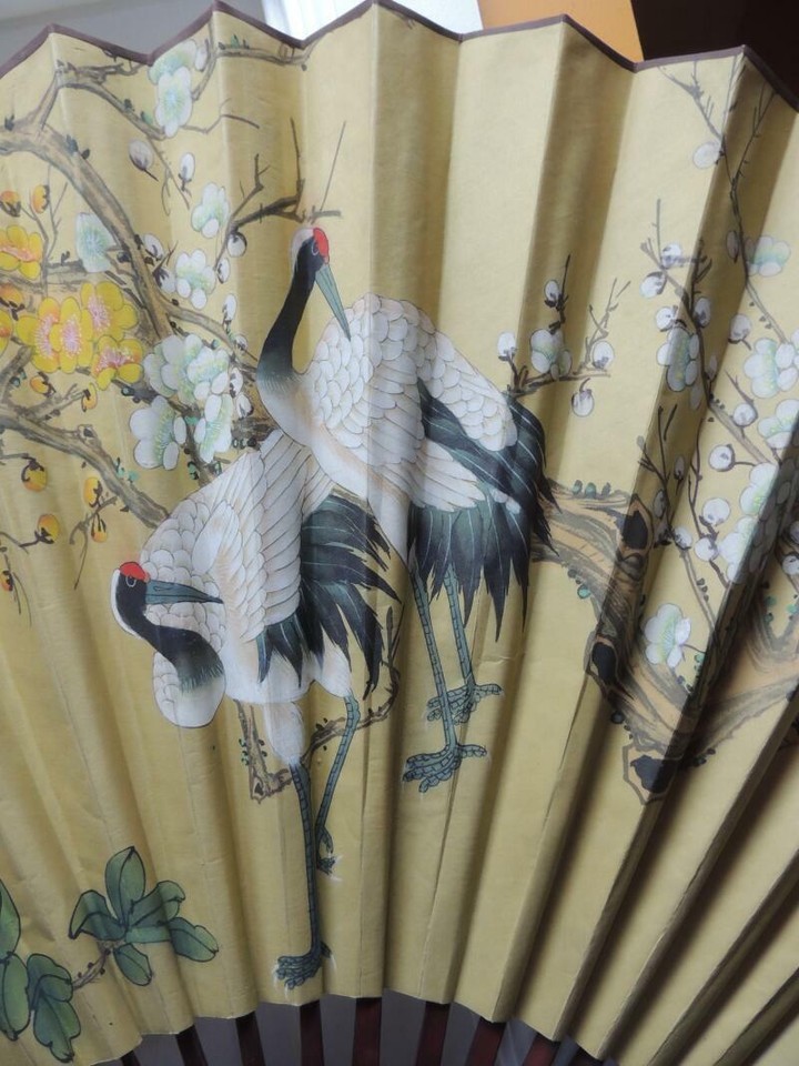 Chinese Fan 30"x52" Painted Cranes Signed and 35 similar items