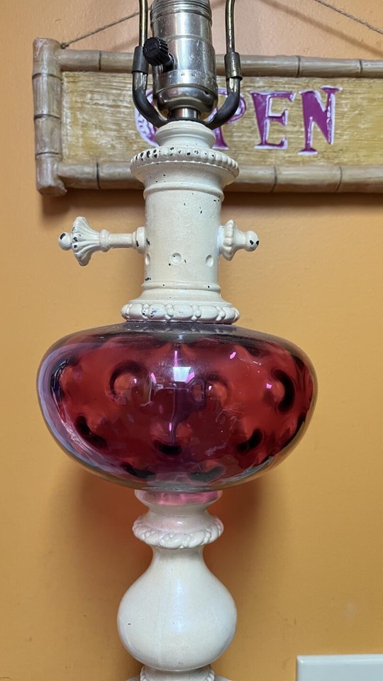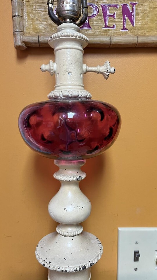 Antique Cranberry Blown Glass Table Lamp 29 x 6 Electric Oil Gas Victorian