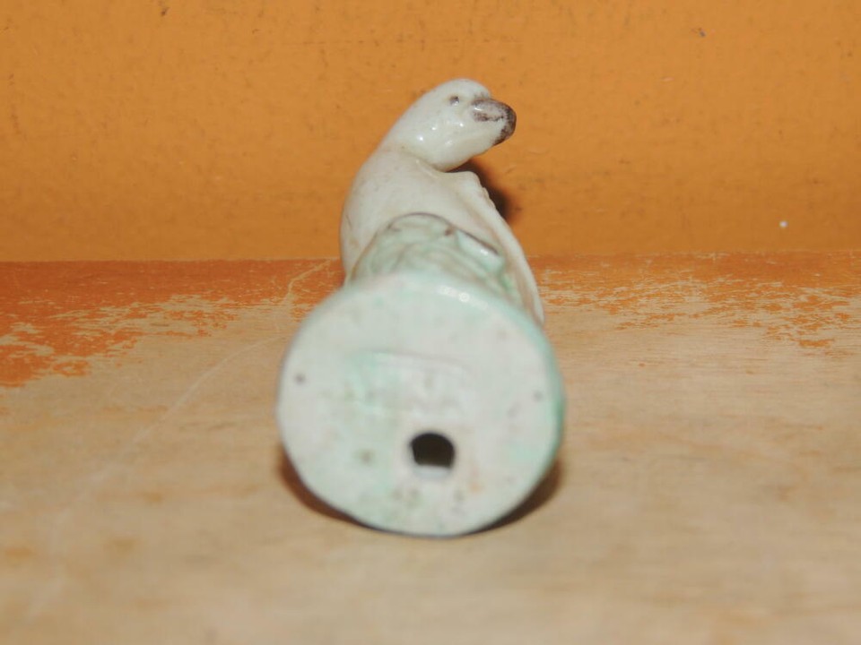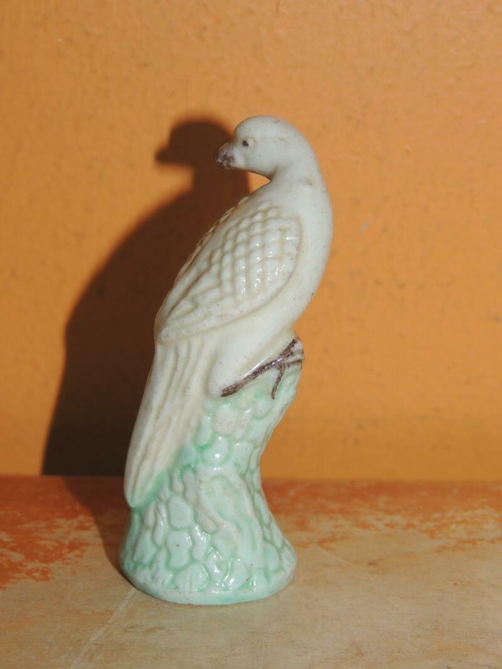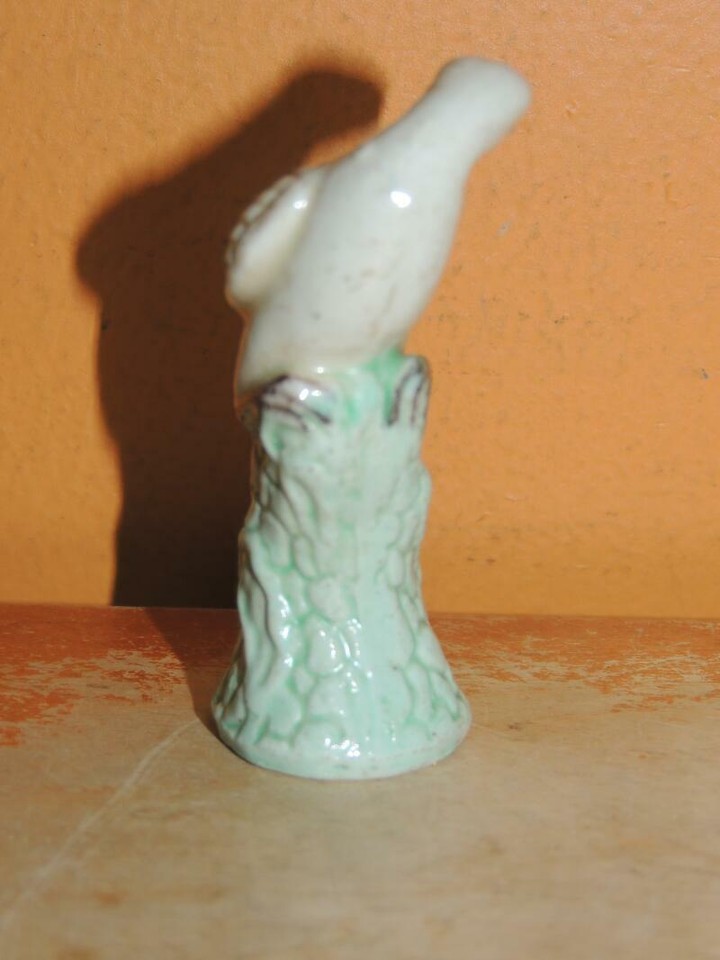 Mud Bird 2.5"+ white marked China Mudman Antique c1910 dove parrot longtail