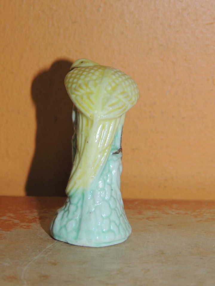 Mud Bird 2.25" yellow mark China Mudman Antique c1910 dove parrot longtail