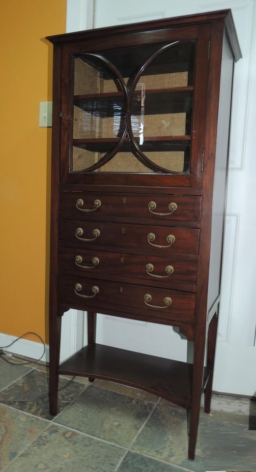 Mahogany Store Display Cabinet 54"x24"x14.75" Hepplewhite rattan lined ANTIQUE