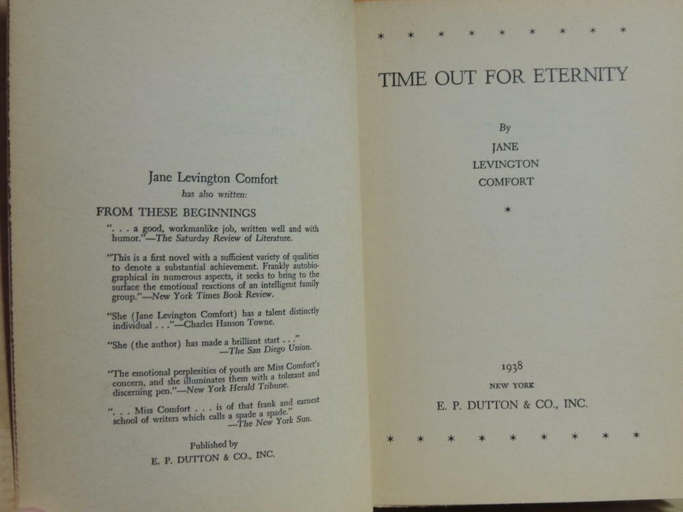 1938 Time Out for Eternity Jane Levington Comfort First Edition E. P Dutton & Co