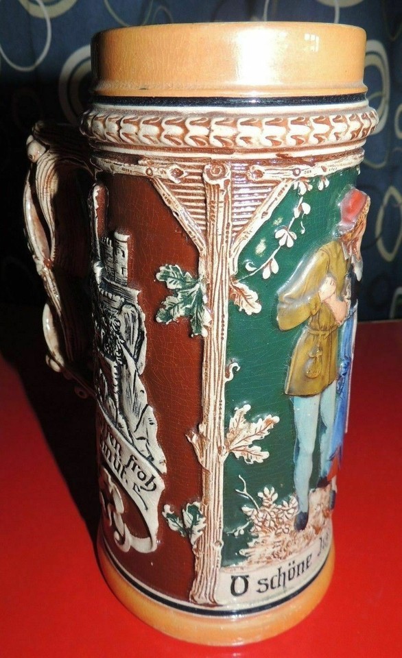 Stein German 7.5" "O' Schöne Jugendzeit" "Bier Lieb und Lied" marked Germany &