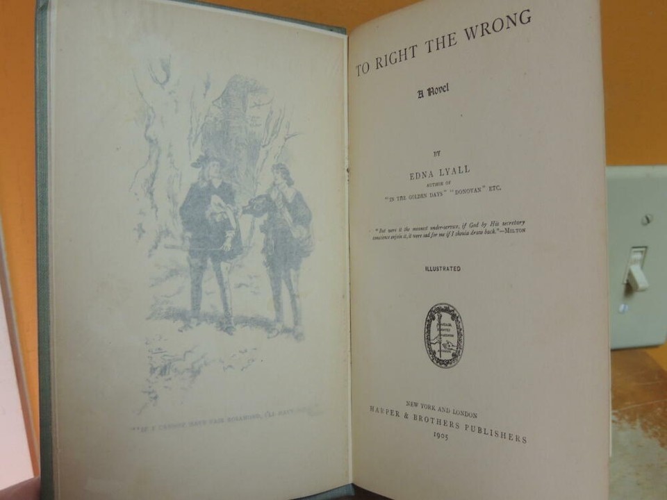 Antique 1905 To Right the Wrong Edna Lyall Harper Brothers copy 1893 Illustrated