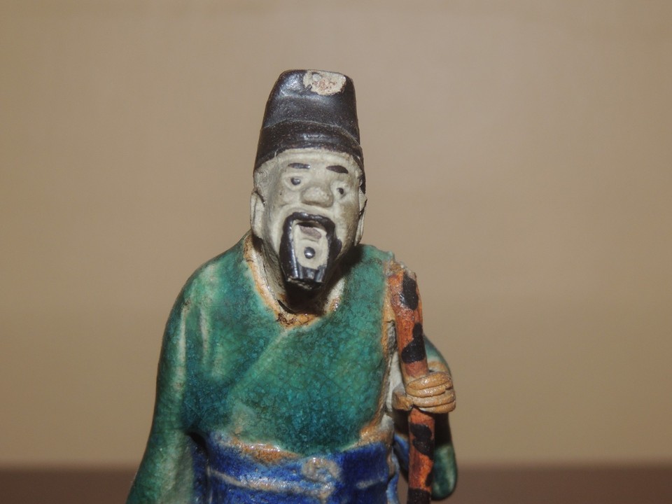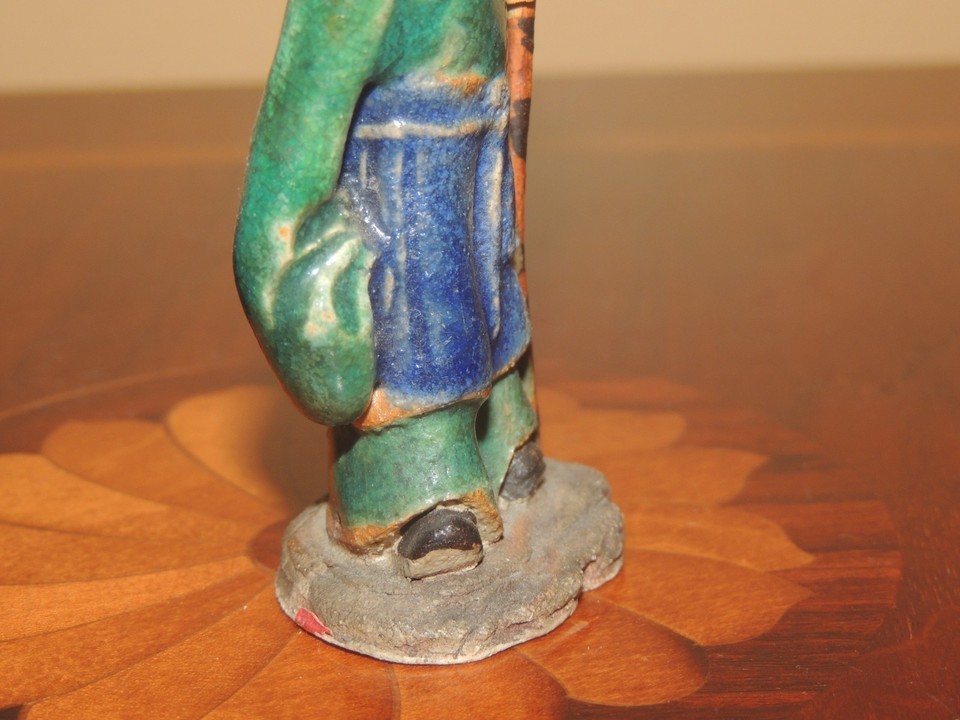 Chinese Mud Man Men 3.25"+ Green & Blue robe w Staff Mudman Antique AS IS