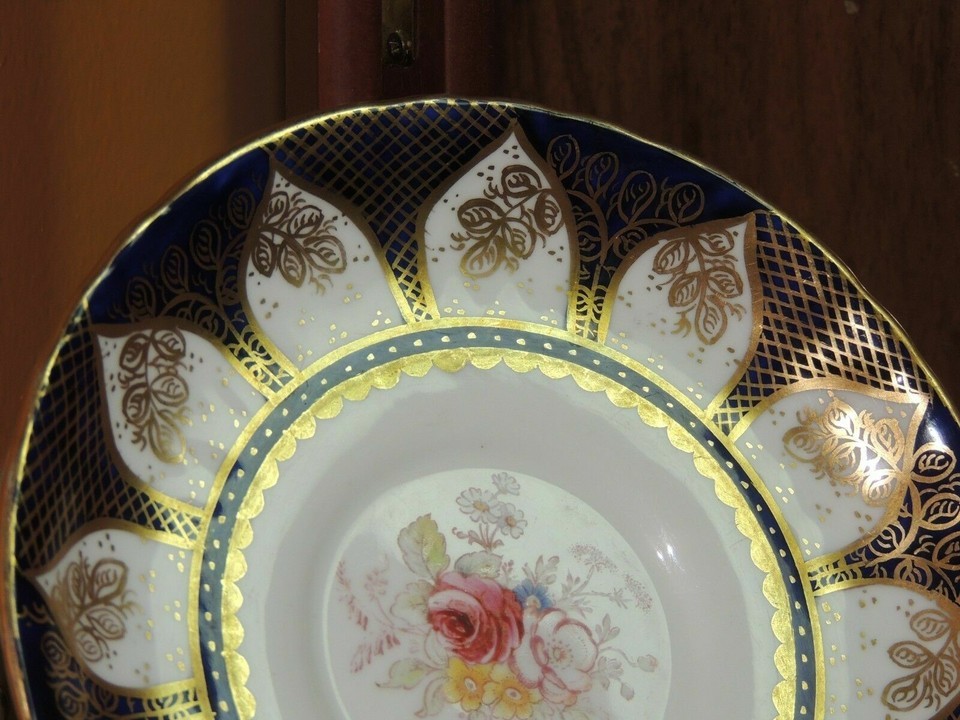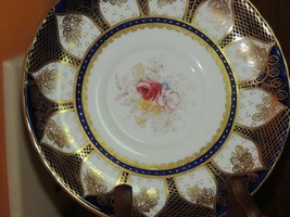 One Royal Crown Derby Saucer 5.75" Cobalt Gold rose trellis accent Hand Painted