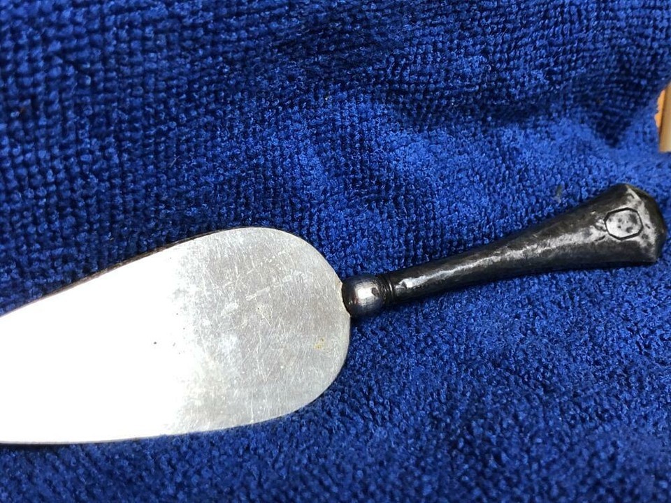 Sterling Silver 6" Cake Pie Dessert Server hammered w hexagon shield arts crafts